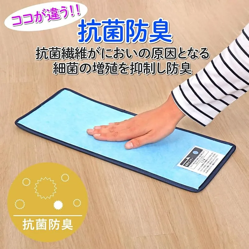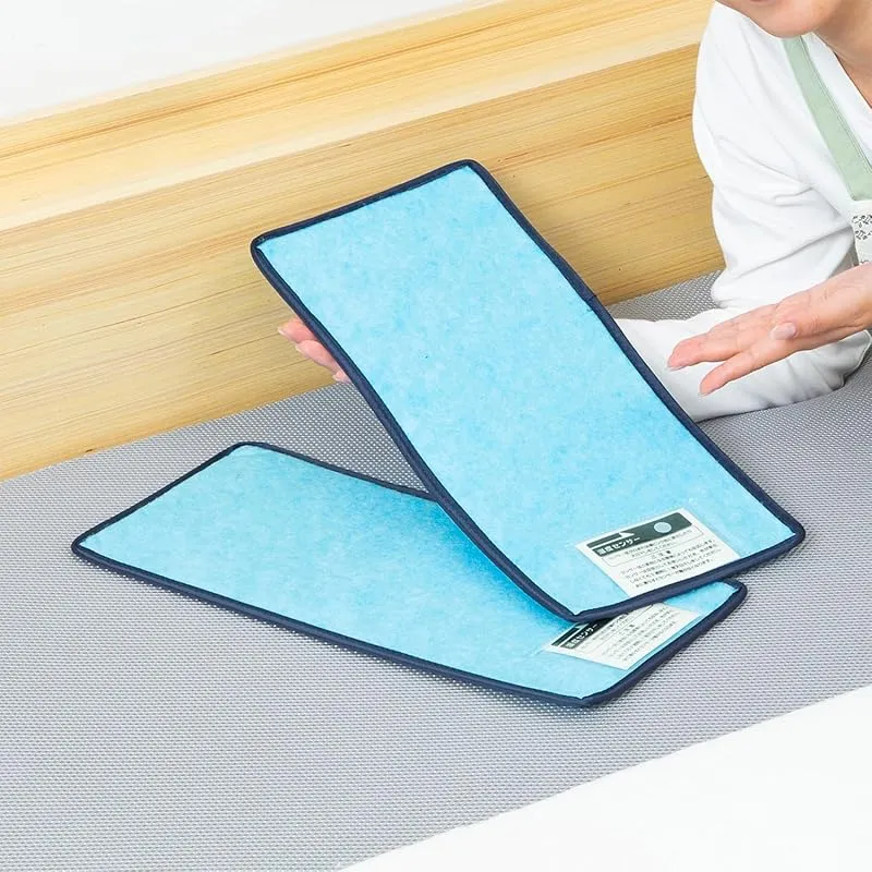 【商品仕様】:サイズ/約18×40cm、カラー/ライトブルー、内容/2枚、材質/ポリエステル80%・合成繊維(アクリレート系)20%[ポリエステルの内の13%は抗菌防臭効果のある繊維を使用]
