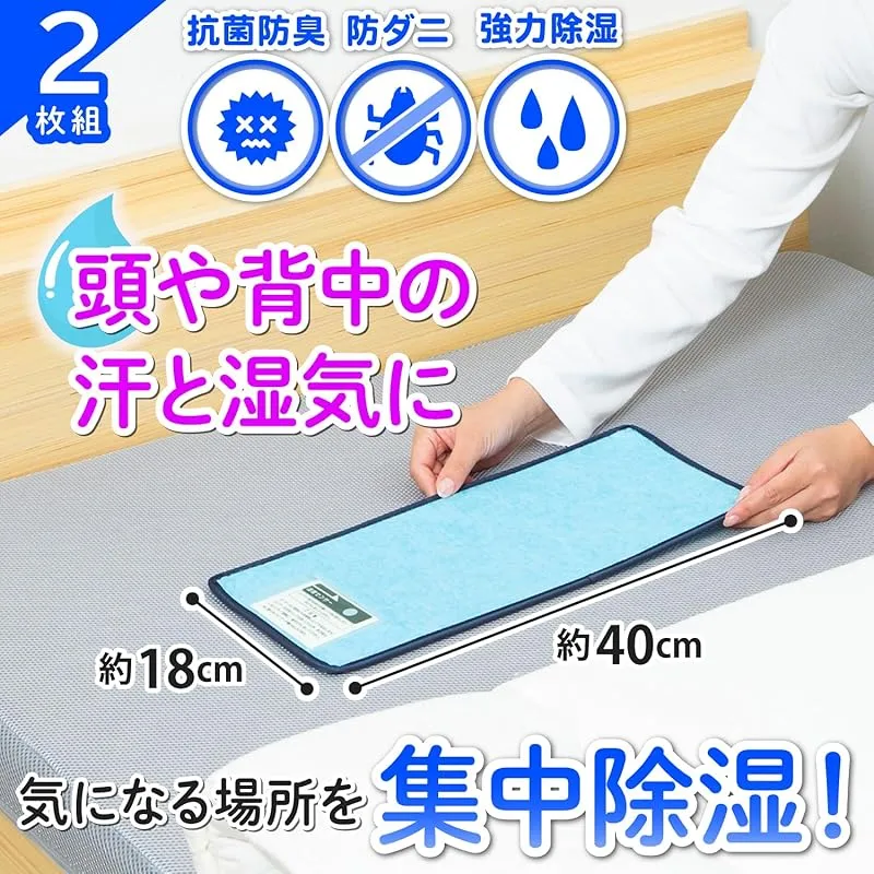 【抗菌防臭・防ダニコンパクト除湿シート】:抗菌防臭効果をプラスした除湿シート。抗菌繊維が細菌の増殖を抑えることで気になるにおいを防ぐ。
