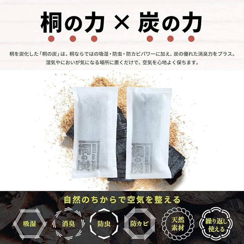 【 桐の炭 日本製 】 湿気やニオイの気になる場所に置くだけ 薬品不使用 繰り返し使える 天然素材の桐のチカラで調湿 防虫 防カビ 引き出し 衣類収納 湿気取り クローゼット 押入れ 除湿 玄関 靴 脱臭 冷蔵