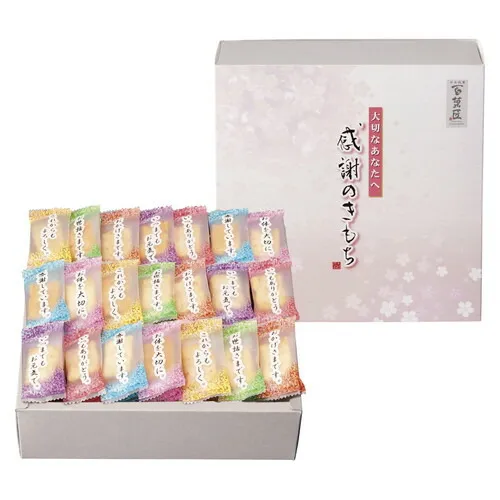 普段言葉では言い表せない「感謝のきもち」を綴りました。中身はソフトに焼き上げた上品な味わいのおかきです。