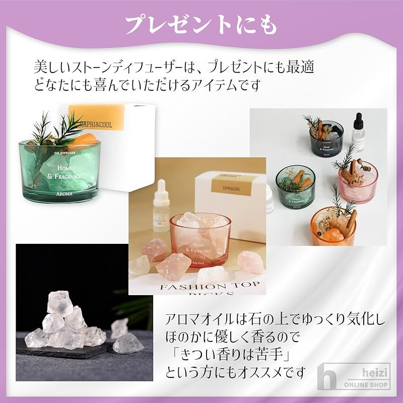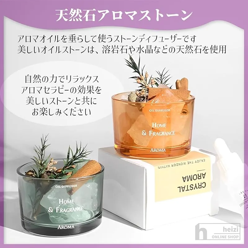 商品名:heizi アロマストーン ストーンディフューザー 天然石 グラス アロマオイル アロマディフューザー (パープル)