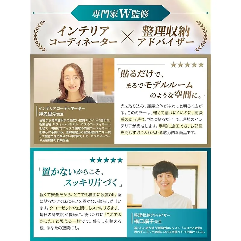 【諦めてませんか?】部屋が狭く、全身鏡を置くスペースが無い…そんな悩みを解決したい一心でBOOMIE「どこでも貼れる割れない鏡」は誕生しました。壁さえあればどこでも設置可能。出かける前に全身をサッとチェックできます。