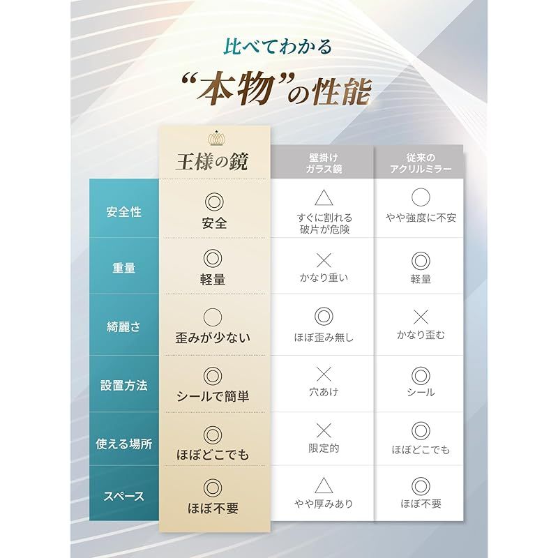 【アクリルミラーで怪我ゼロへ】飛散防止、軽量設計の為、万が一落下しても鏡に比べ怪我のリスクが低下します。地震など災害時にも割れる心配が無く、小さなお子様やペットの安全対策としてもオススメです。