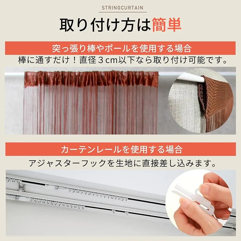 商品名:[KJ] ストリングカーテン 間仕切り 紐のれん 洋風すだれ フリンジ 暖簾 高さ200cm×横100cm おしゃれ インテリア タペストリー (ブラック, 通常)