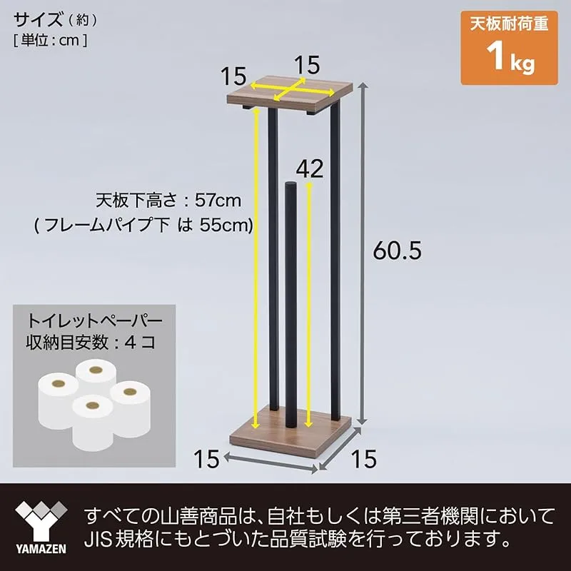 商品名:山善(YAMAZEN) ラック トイレットペーパー スタンド トイレ 収納 スリム 棚付き (スマホ置き/インテリア) トイレットペーパーホルダー 隙間収納 ストッカー 幅15×奥行15×高さ60.5cm 組立品 ダークブラウン/マットブラック RTPS-15