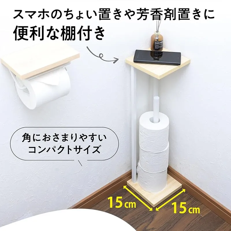 【トイレットペーパーをスマートに収納】トイレットペーパーを約4ロール収納できるスタンドです。角におさまりが良いスクエア型で、ちょっとしたすき間にも置きやすいサイズ感です。