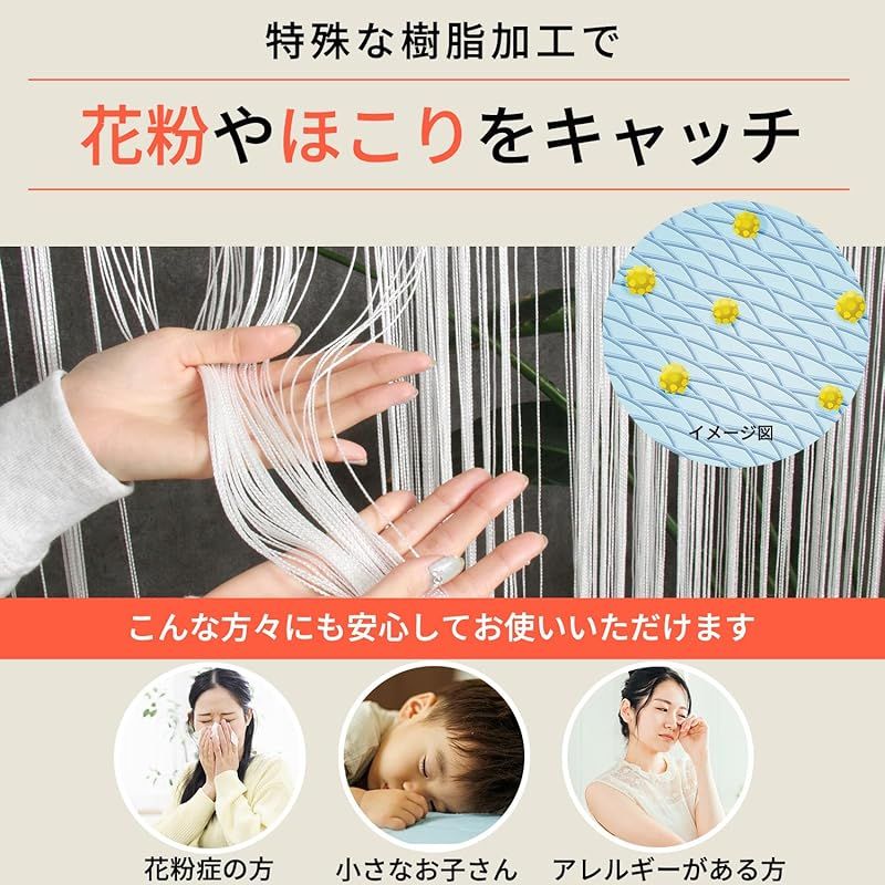 ※画像は2枚使用した場合の画像となっております。 ※幅約100cm×高さ約200cm (製品の特性上、上部の弛み方により長さが10cmほどズレる場合がございます) ※長さが異なる場合はハサミなどでカットが可能でございます。 ※特殊樹皮加工の為、においが気になる方は一度洗濯をしてからご使用ください。 ※目隠しを目的した製品ではござません。間仕切りの透け感の調整は幅を寄せてご使用すると密度が増します。