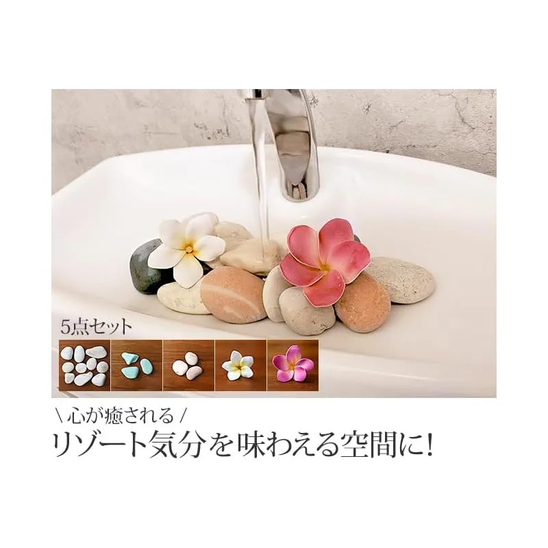 【Cocobari】トイレタンク 飾り石セット プルメリア造花付き トイレ インテリア 雑貨 おしゃれ 化粧石 飾り石 手洗い器 洗面ボウル 装飾用 ハワイ 南国 バリ雑貨 バリ風 小石 かわいい