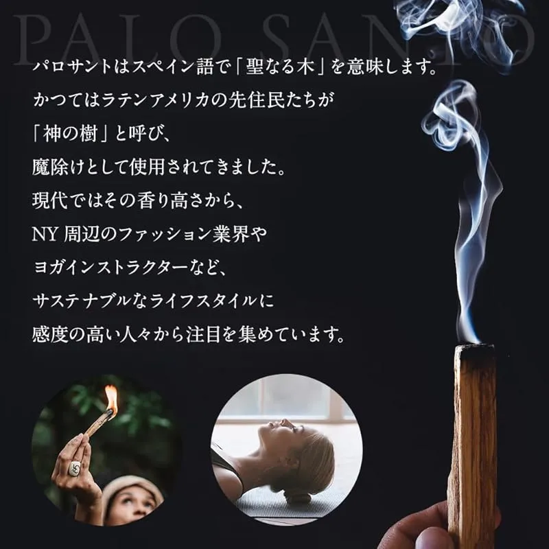?パロサントは南米産の香木で、かつてラテンアメリカの先住民たちが「神の樹」と呼び、 魔除け、空間の浄化として使用されてきた香木です。その香りは神秘的で心を整えると言われています。