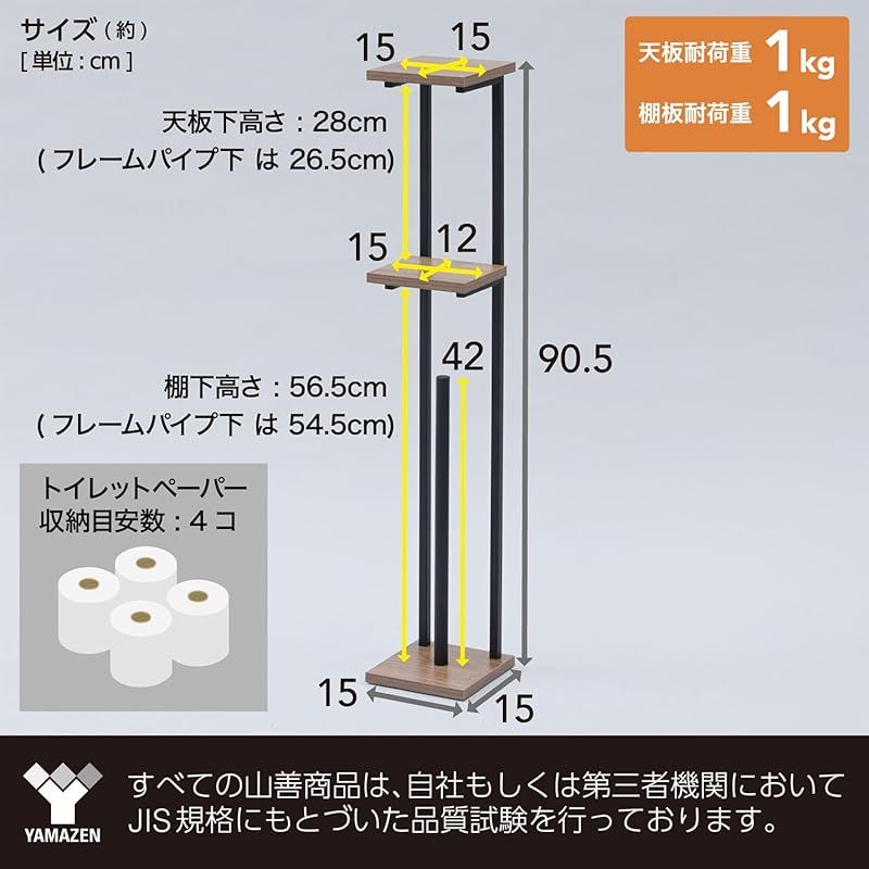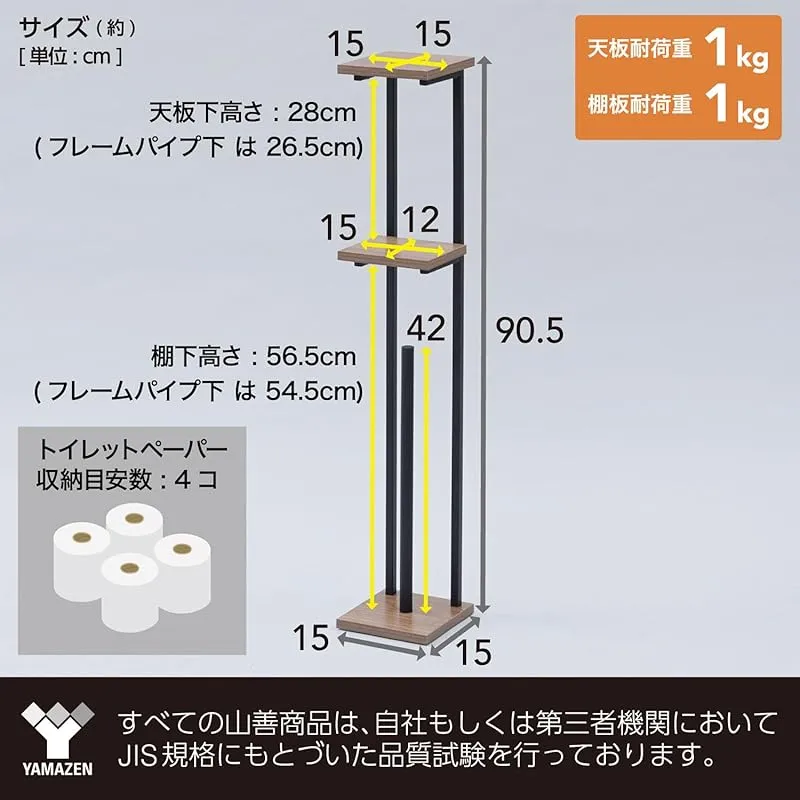 商品名:山善(YAMAZEN) ラック トイレットペーパー スタンド トイレ 収納 スリム 棚付き (スマホ置き/インテリア) トイレットペーパーホルダー 隙間収納 ストッカー 幅15×奥行15×高さ90.5cm 組立品 ウッドナチュラル/マットホワイト RTPS-1
