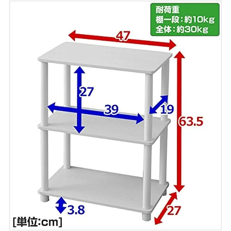 材質:支柱=ポリエチレン・ポリプロピレン、棚板=プリント紙化粧パーティクルボード