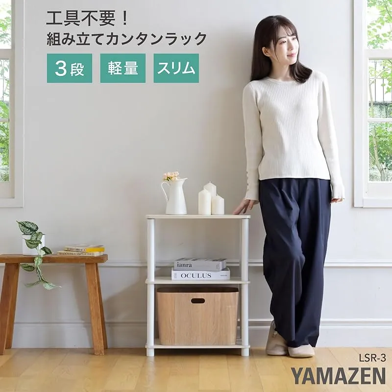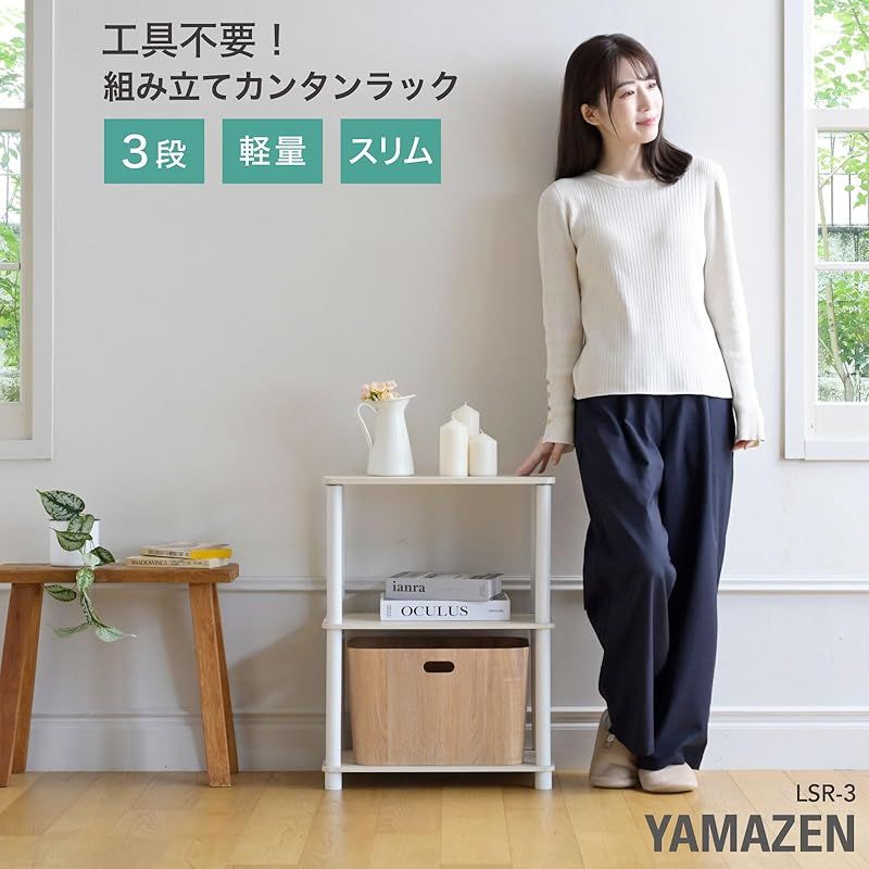 商品名:山善(YAMAZEN) ラック 3段 棚 組立カンタン 軽量 オープンラック シェルフ 収納棚 一人暮らし 幅47×奥行27×高さ63.5cm 組立品 ホワイトウォッシュ3/ホワイト LSR-3(WW3/WH)