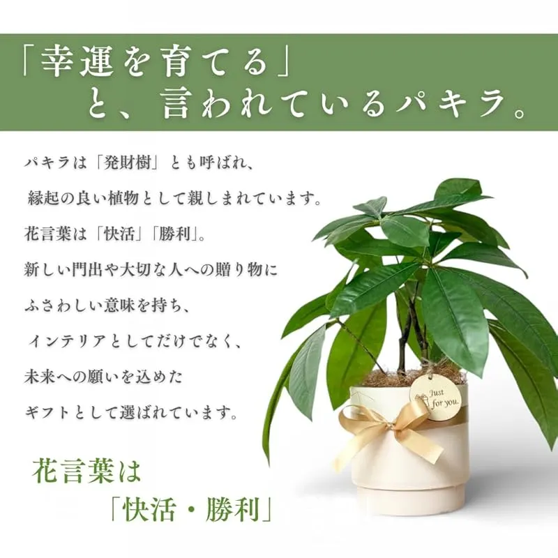 ?「発財樹」とも呼ばれ、風水では金運や幸運を呼び込むといわれる植物。インテリアにもギフトにもおすすめ。