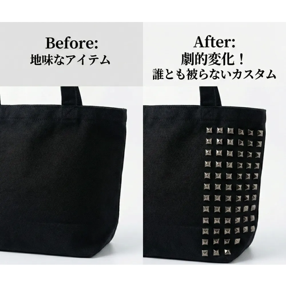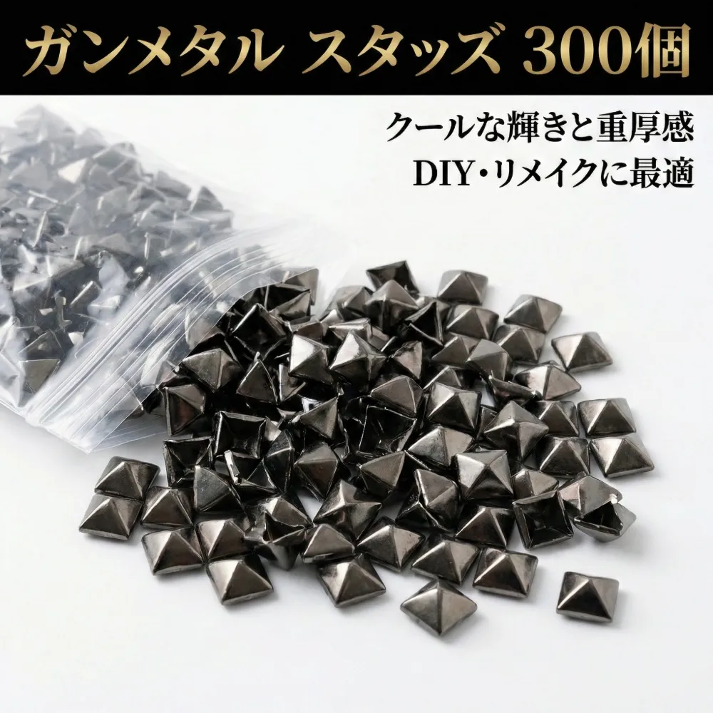 【商品詳細】クールな輝き×重厚感。DIY・リメイクに最適な「ガンメタルスタッズ」300個セットです。
