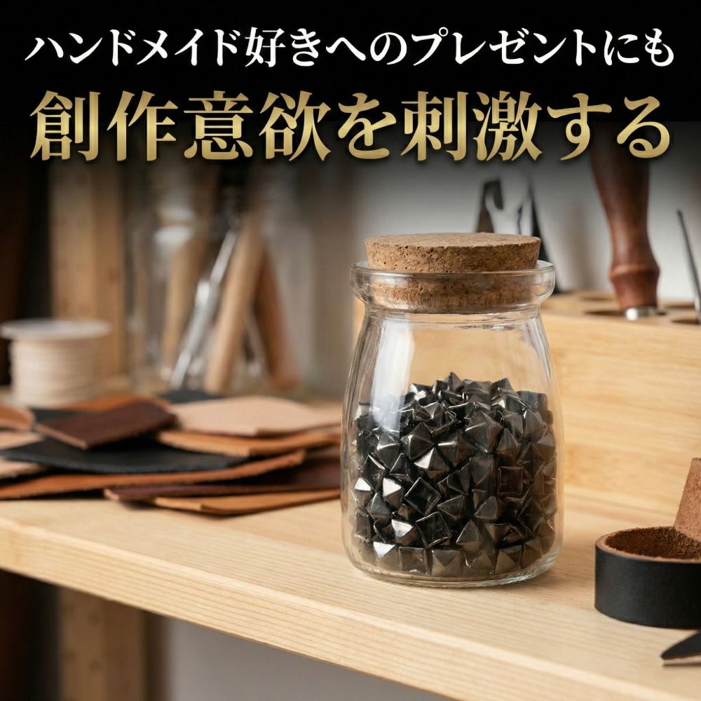10mm角のピラミッド型で存在感があり、バッグ・革小物・衣類・アクセサリーなど幅広い制作に活躍します。