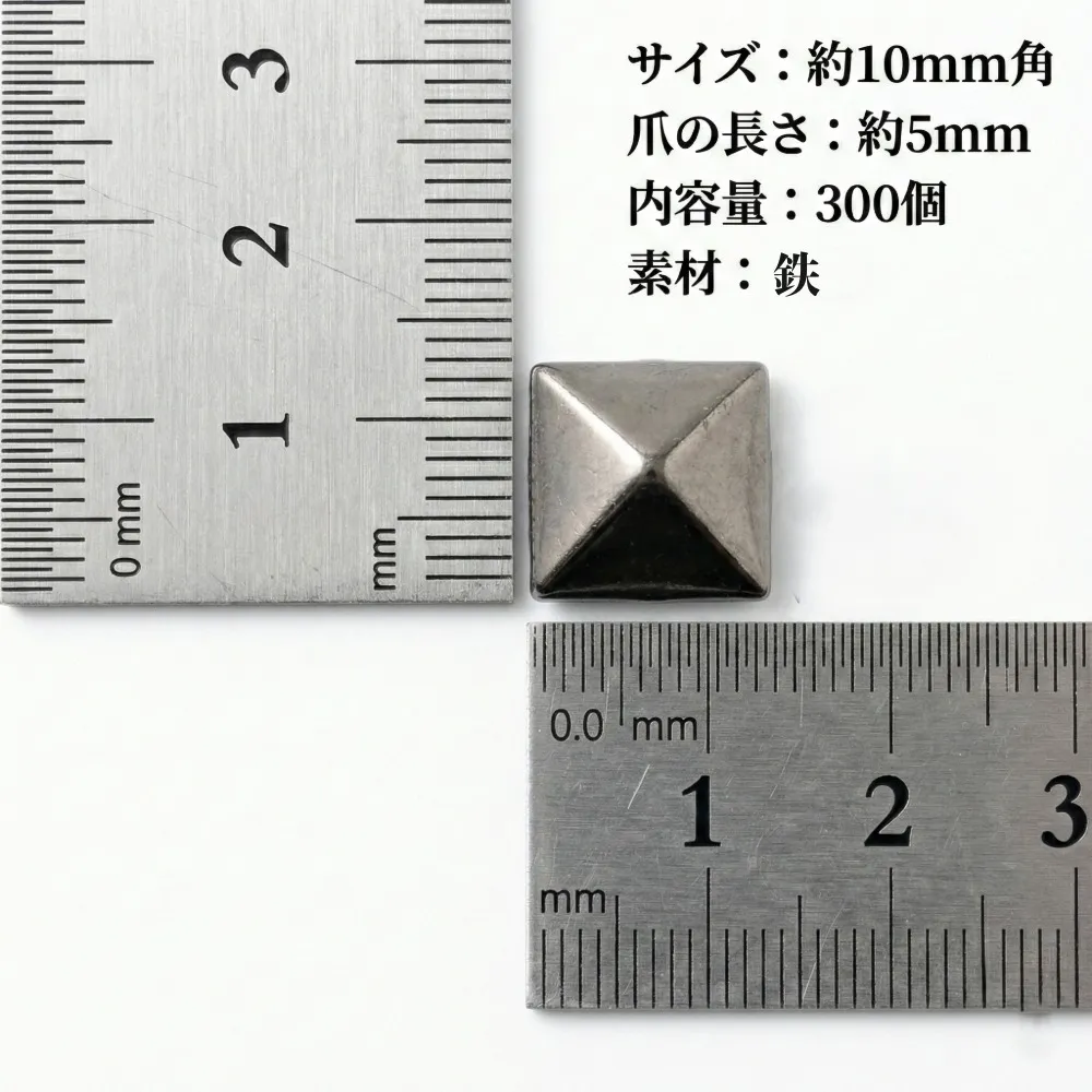 スタッズ ガンメタ ガンメタル 角スタッズ ピラミッド スクエア 10mm 4本爪 クロータイプ 角鋲 鋲 パンク ハード モード レザークラフト 革細工 DIY リメイク カスタム ハンドメイド 手芸 パーツ 金具 バッグ 財布 ベルト 革ジャン 服 飾り 装飾 大容量 300個