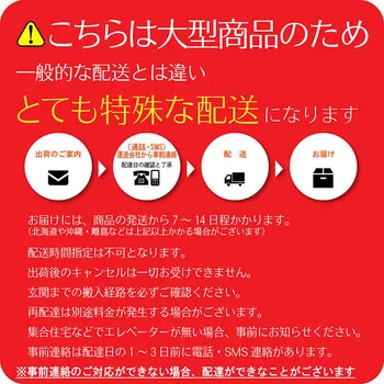 大型家具専門の配送のため、商品のお届けに発送から7〜14日程度かかります。