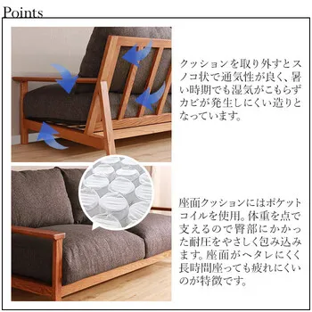 クッション:中材(ウレタンフォーム・ポケットコイル)、張地(ポリエステル100%)