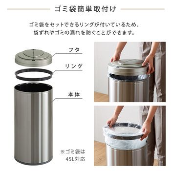 ゴミ袋取付はストッパーに袋を巻きつけるだけで簡単設置です。