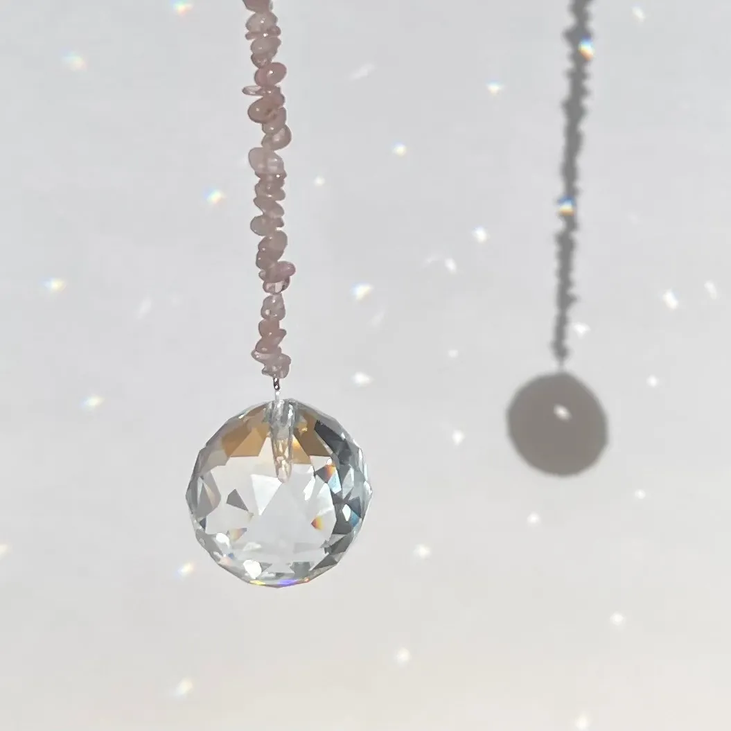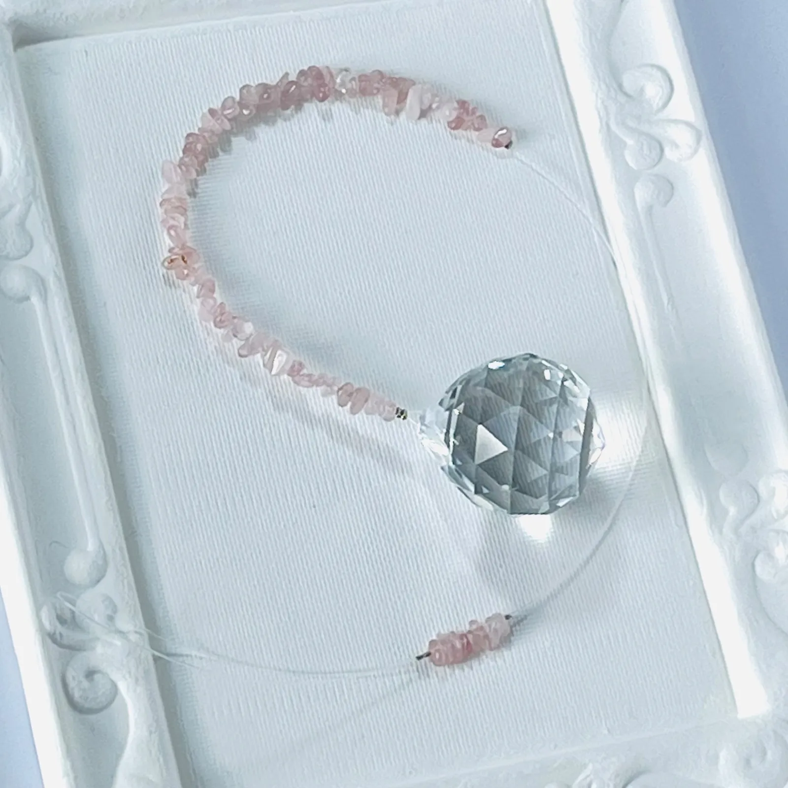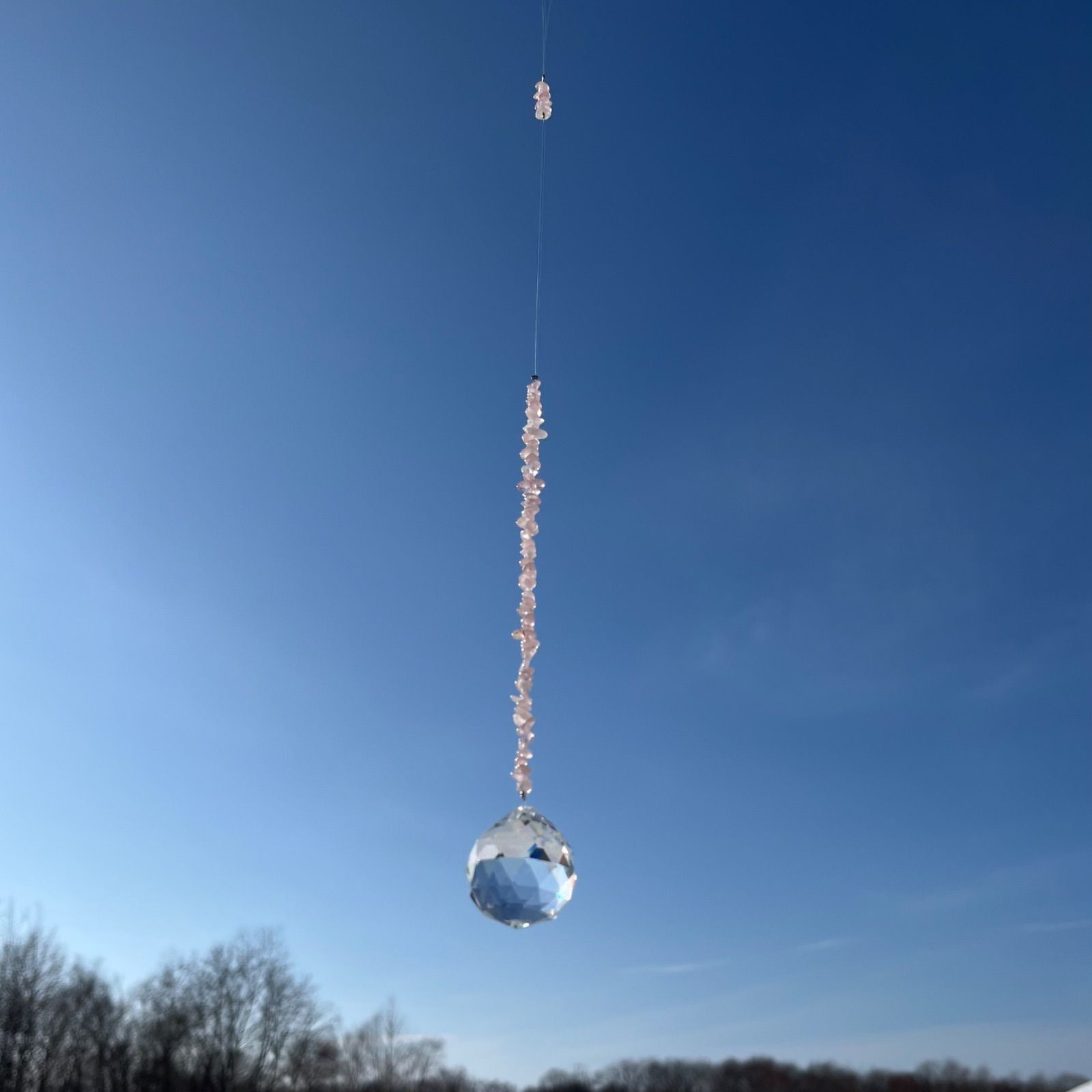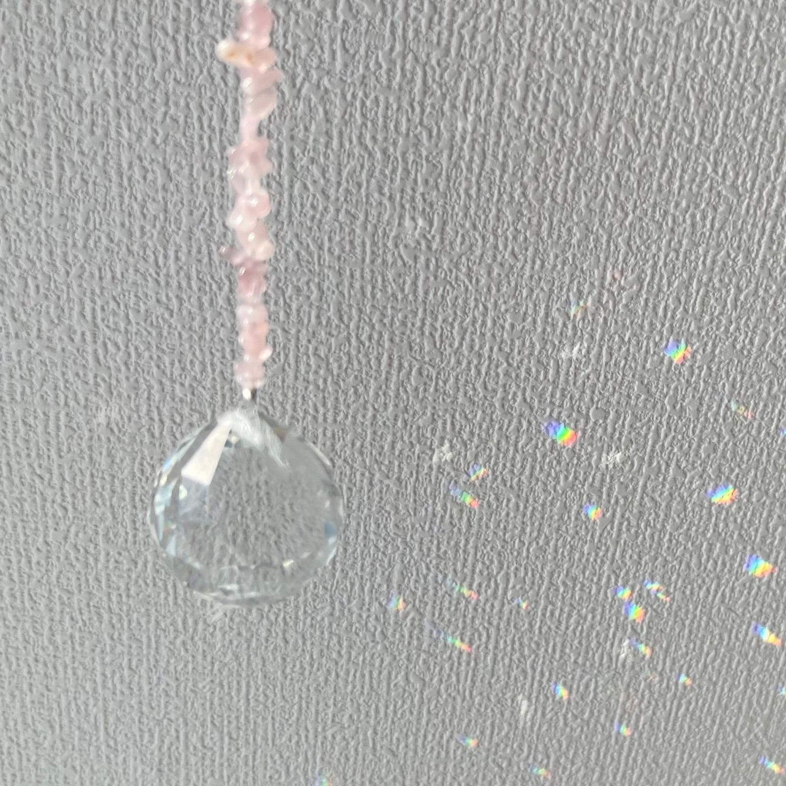 ディープローズクオーツのさざれ石のシンプルサンキャッチャー。
