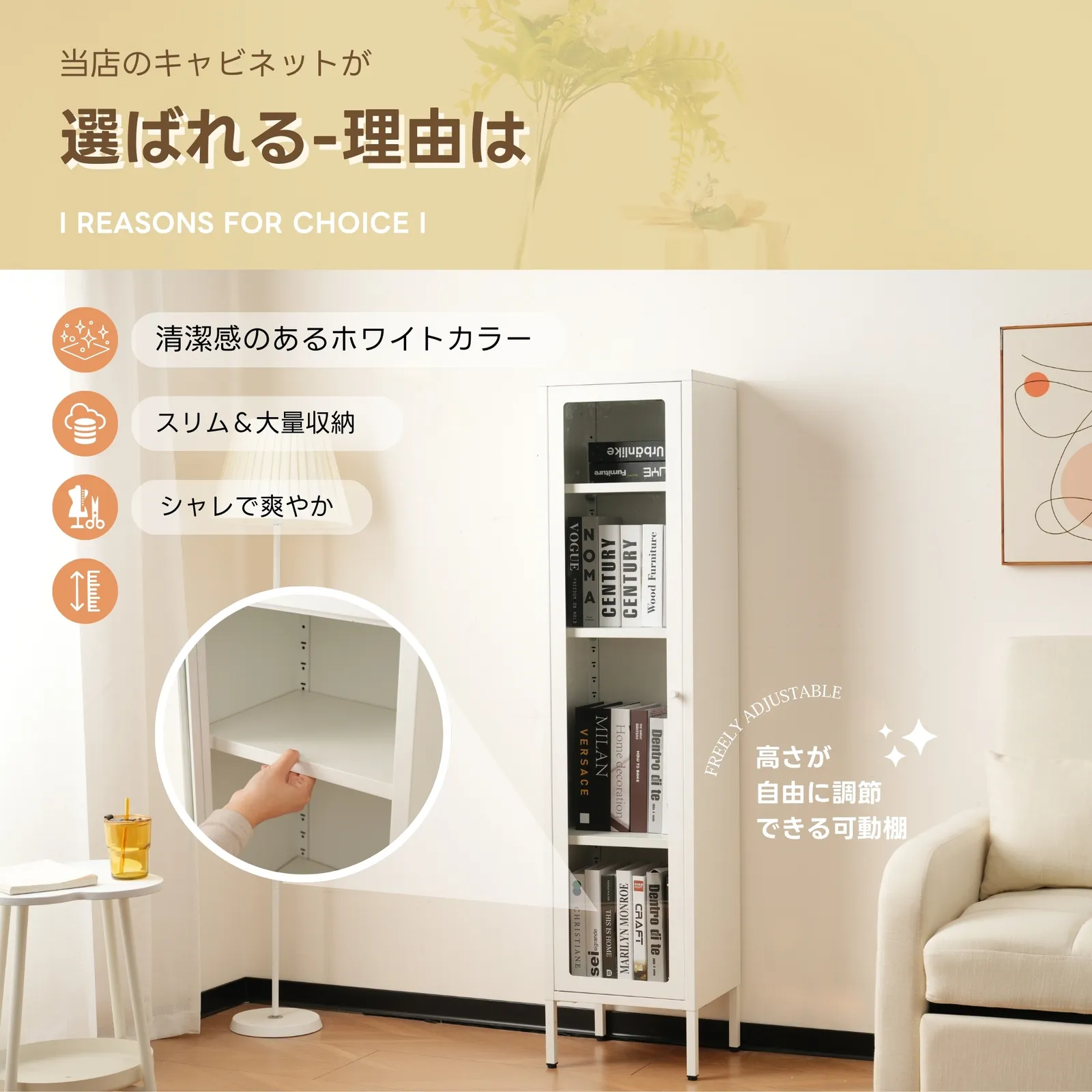 ・シンプルモダンな隙間収納、リビング、ダイニング、洗面室などどこでもご使用いただけます。