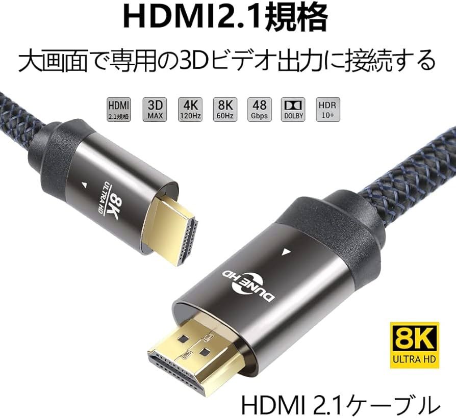 【最新の8K HDMI 2.1規格 】:ハイスピード 8K HDMI 2.1 ケーブル。帯域幅を48Gbpsに拡張し、8K@60Hz, 8K@50Hz, 4K@120Hz, 4K@144Hz,4K@100Hz,2k@165Hz,1080P@240Hz,2k@165Hz,1080P@240Hz,UHD、HDR 、FHD、3D、イーサネット、オーディオリターンチャンネル、HDR 4:4カラーフォーマット、48ビット/px 色深度をサポート。 1080pと同等の4倍のクリア。 HDMI 2.1テクノロジーは、