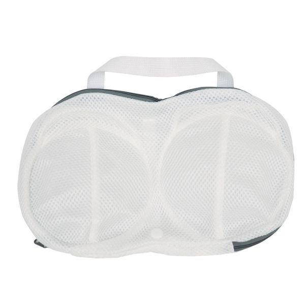 (1)洗濯ネットのカップ面に、カップ部分が重なるようブラジャーを置き、ストラップで固定します。