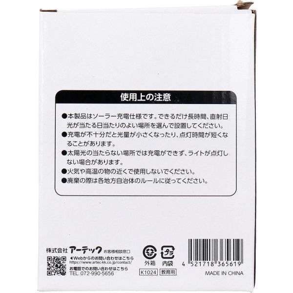 ・太陽光の当たらない場所では充電ができず、ライトが点灯しない場合があります。