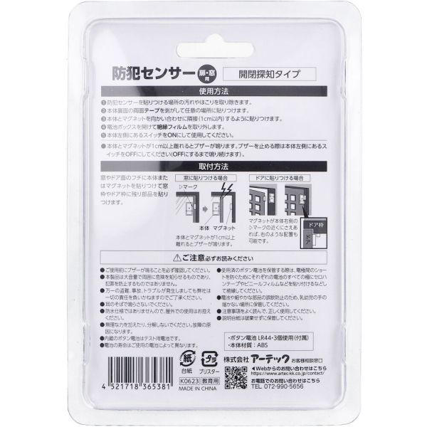 防犯センサー 開閉検知タイプ ブリスターパッケージ 1セット