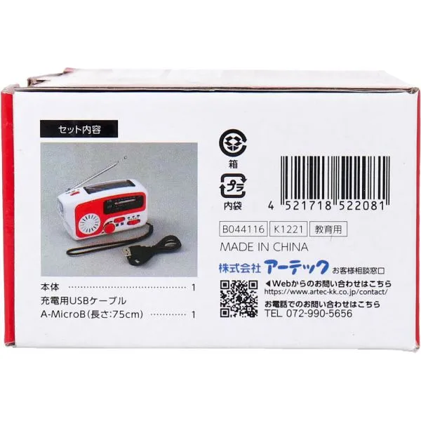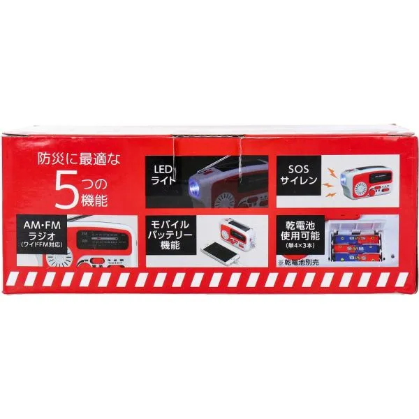 ・充電方式:USB充電、ソーラー充電、手回し充電
