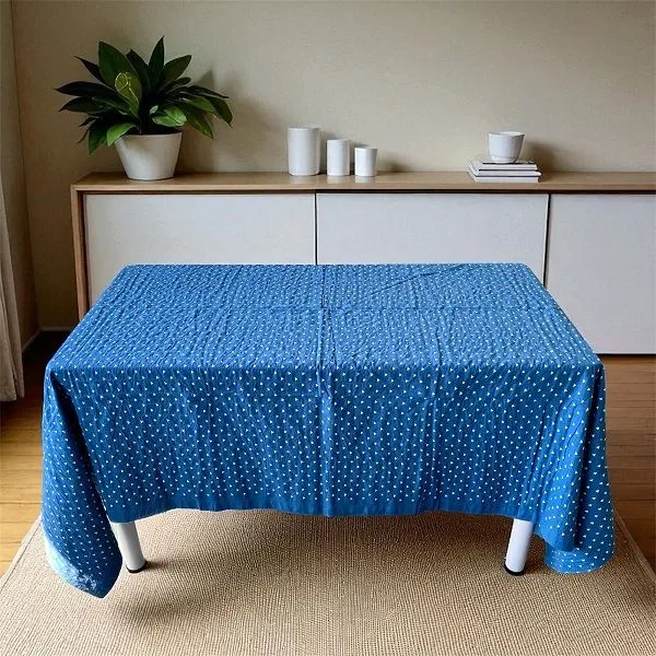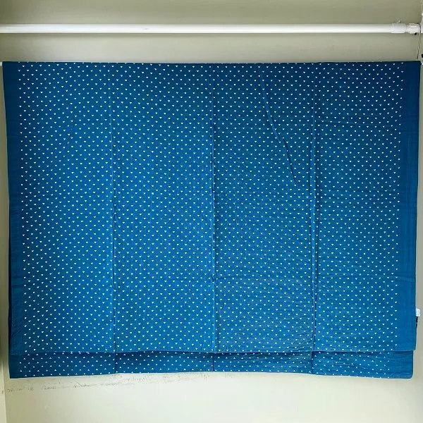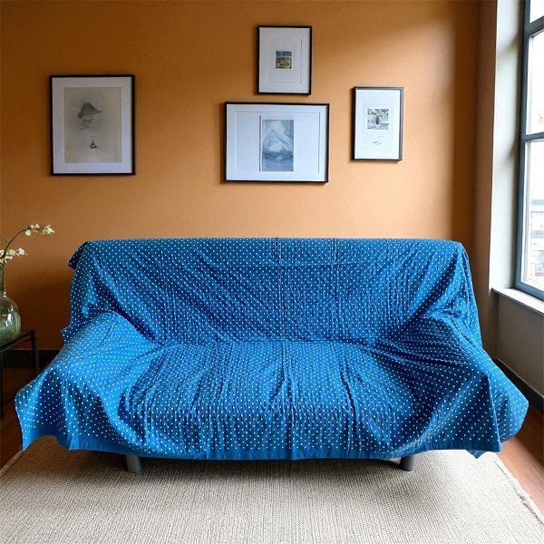 【*フリークロス トレイル ステッチネイビー インド綿100% ベッドカバー ソファーカバー シングル マルチクロス カーテン 間切り 水色ドット km031】
