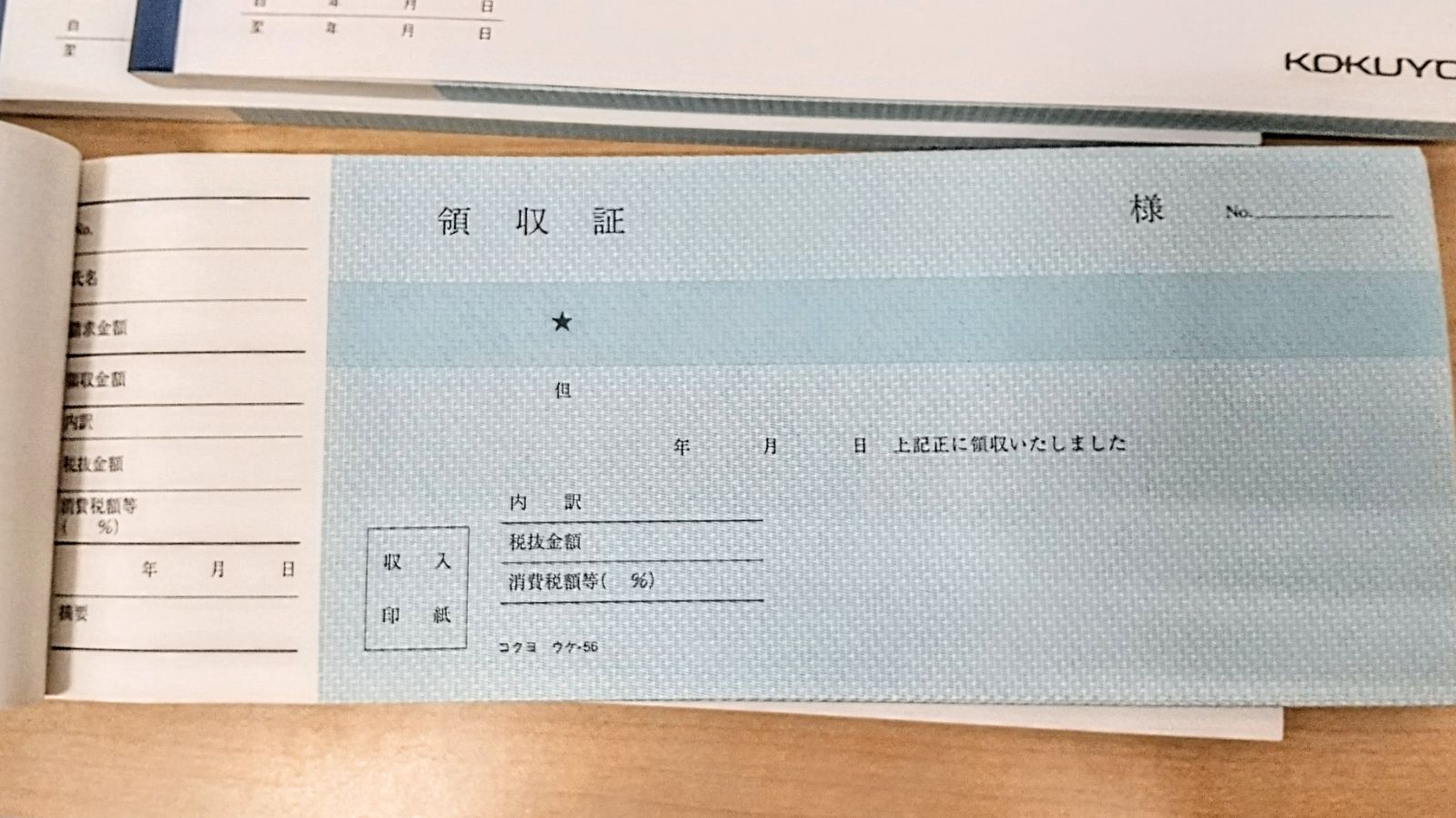 コクヨ 領収証 ウケ-56 4冊セット 新品ですが店頭で陳列販売しておりましたのであらかじめご了承くださいませ。また4冊のうち1冊につきまして値札のはがし跡がございます。写真3でご確認くださいませ。 防水のうえ再利用の梱包材でメルカリ便でお届けいたします。 コクヨ 領収証 横書き 小切手判横 二色刷り 100枚 ウケ-56 ホワイト
