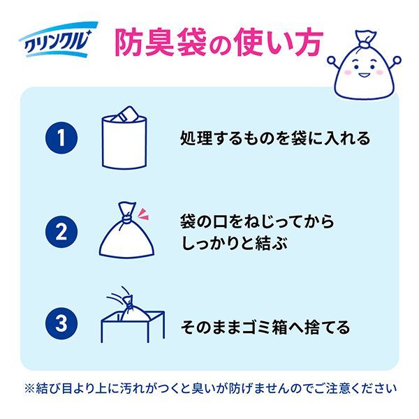 ・使用済み紙おむつはトイレなどで汚物を取り除いた上で、この袋に入れてください。