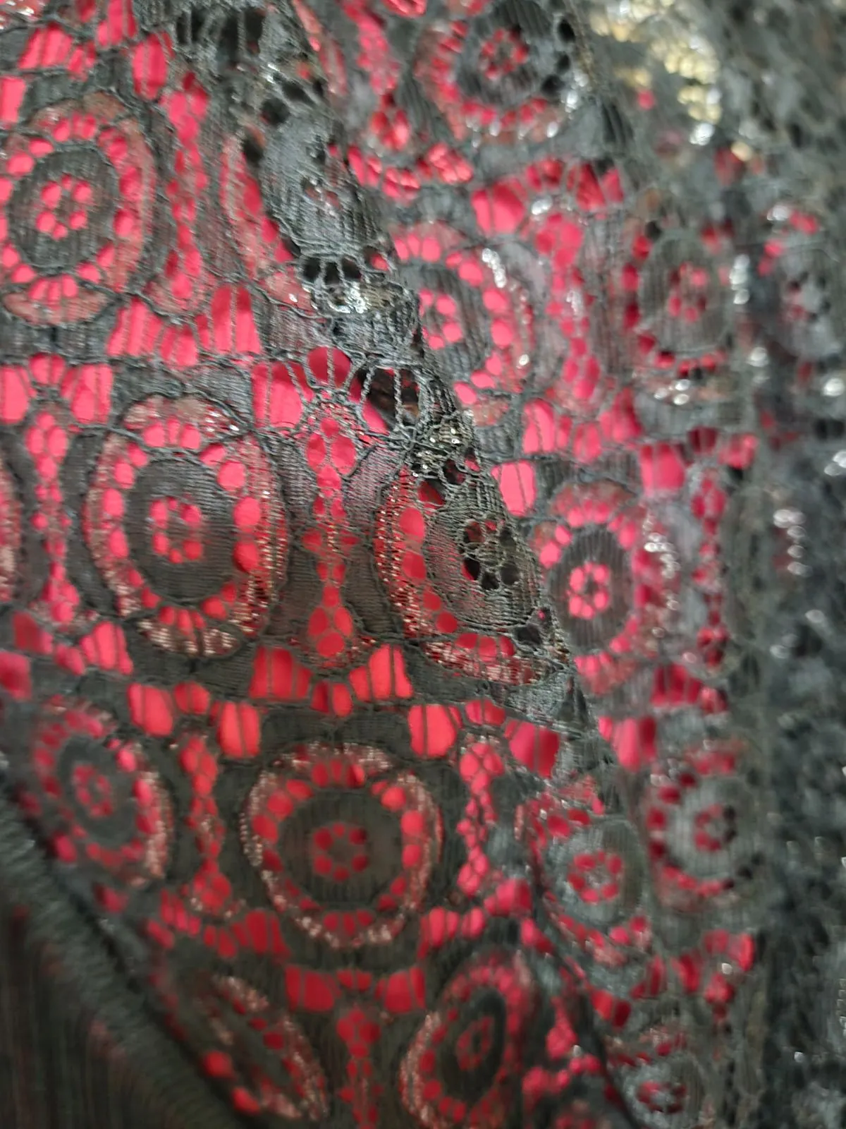 黒×シルバーラメのレース生地に黒のフレコを付けました。