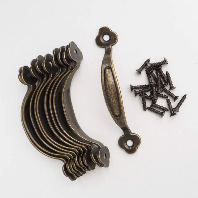 Wfeiyanton 取手 プルハンドル 亜鉛合金 アーチ型 ボックスハンドル アンティーク調 レトロ 取っ手 ネジ家具 家具 キッ10個入り (ブロンズトーン梅形(8cmx1.5cm))