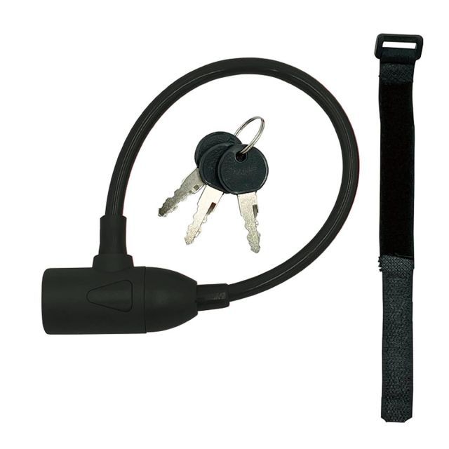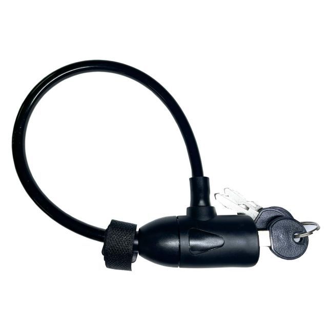 【電動アシスト自転車バッテリーロック】急増中のバッテリー盗難対策に!・ワイヤー先端部はバッテリーに通しやすいスリム設計(約Φ13mm)!・本体は車体にやさしい軟質カバー設計!・固定用マジックテープ付き!