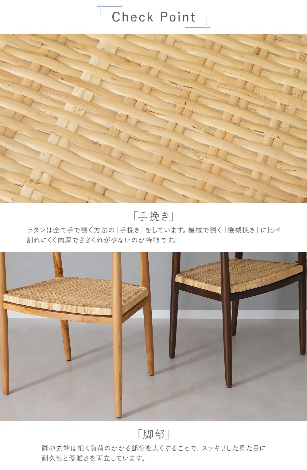 ■材質: 〈共通〉チークウッド[無垢材](本体)、PP[ポリプロピレン](脚裏) 〈張り地〉天然ラタン 本体 約W 64.5×約D 55×約H 82(cm) 梱包サイズ 約W 65×約D 81×約H 54(cm)(1脚) シートタイプ:天然ラタン/約9.2kg 重量 シートタイプ:天然ラタン/約6.1kg(1脚) 材質 〈共通〉チークウッド[無垢材](本体)、PP[ポリプロピレン](脚裏) 〈張り地〉天然ラタン 1.送料について…全国一律送料無料になります。 (北海道、東北へのお届けは別途送料がかかります。六本木ヒルズ等の一部建物、空港等の一部地域、建築工事現場、一部の海水浴場・片瀬海岸・海の家等にはお届け出来ない場合がございます。ご了承下さい。) ★1階車上でのお渡しとなります。恐れ入りますが荷降ろし・搬入は、お客様にてお願い致します。2.商品について…こちらの商品は新品ではありますが、輸入品につき多少のスリ傷等がある場合がございます。 ご検討の上、ご購入下さい。 設置場所に、搬入可能か、間口、廊下、エレベーター等のサイズは必ずご確認下さい。 配送後にイメージが違う、搬入できないという理由でのキャンセルの場合は、往復の送料をご負担して頂きます。また、商品を開封済みの場合は、商品代金の50%と往復の送料をご負担して頂きます。 よくご検討された上で、ご購入下さい。 3.クレーム品について…出荷時に、検品を致して出荷しておりますが 不具合による返品 商品交換をご希望されます場合は、画像添付の上 ご連絡をお願い致します。 商品交換の場合は、配達時の状態に梱包の上、車上までお持ち願います。商品をご確認・設置されますまでは、梱包材は保管願います。 梱包材をご希望の場合は、梱包材+送料をご請求させて頂きます。