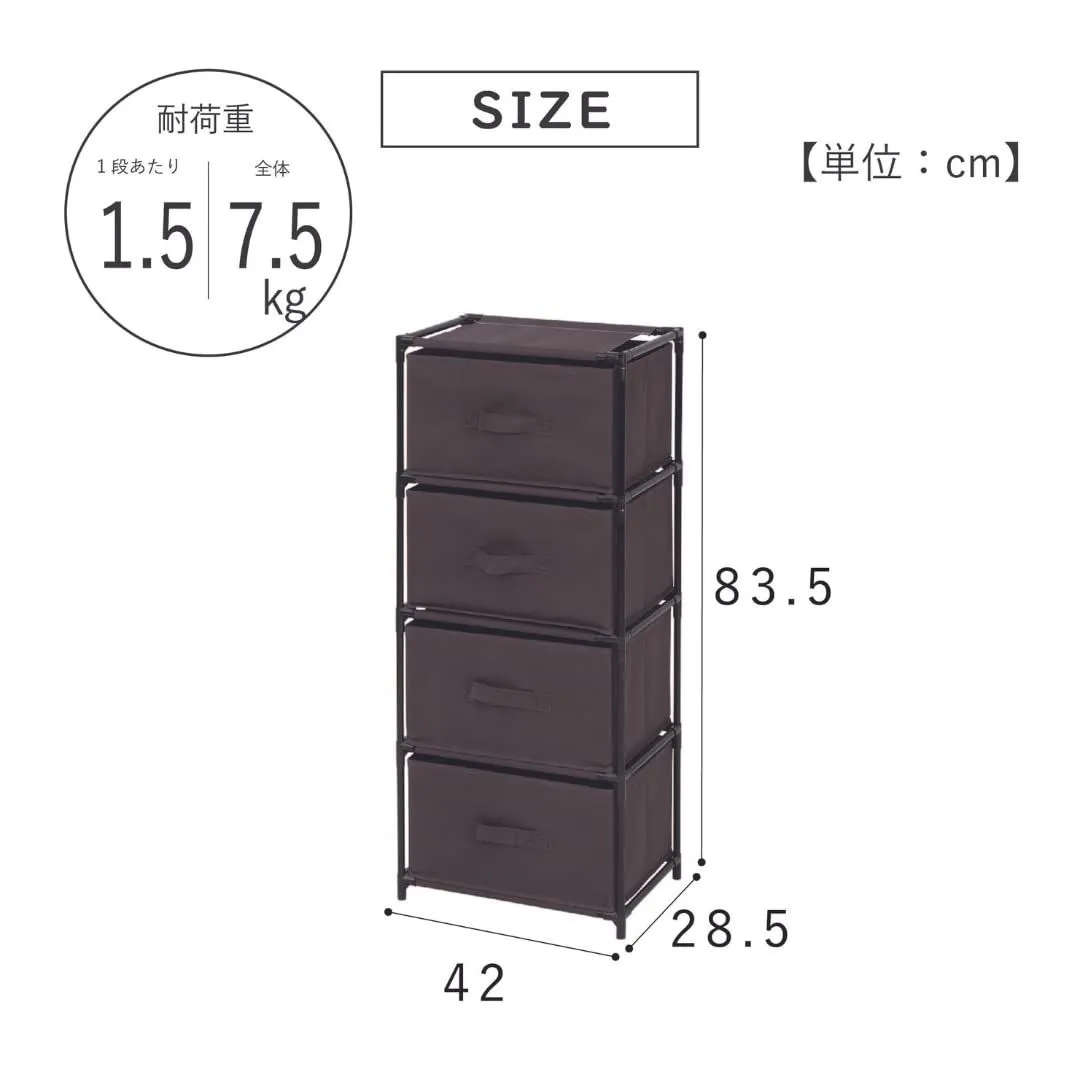 【チェスト・収納・衣類】 合金鋼 ブラウン 42×28.5×83.5cm ランドリーチェスト4段ブラウン 81380BR