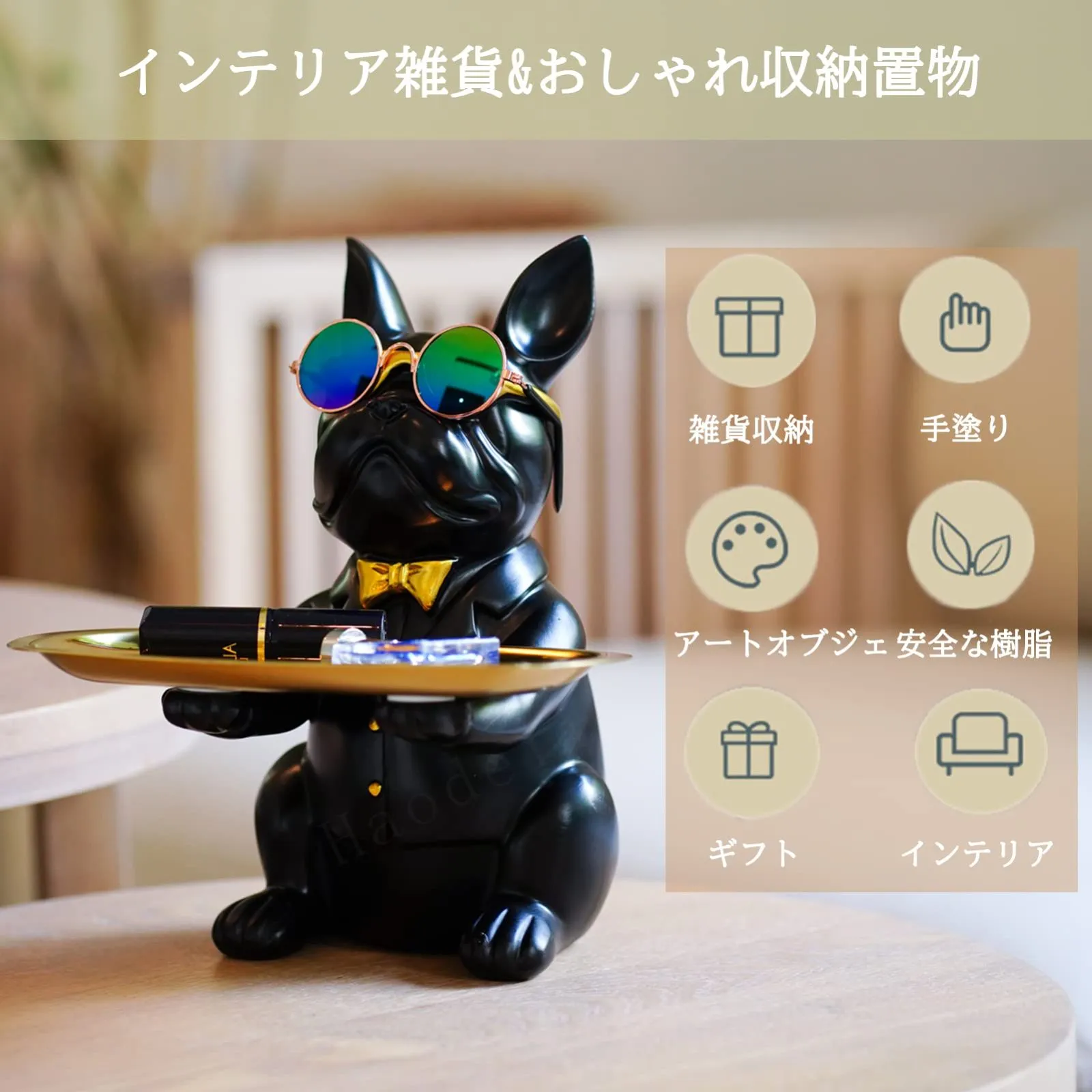 皿を捧げる犬さん 置物 Haodeliy 正規品 クリエイティブ犬キー収納トレイ お皿 貯金箱 犬小銭ボックス 3in1 クリエイティブ 飾り 眼鏡&ステンレス鋼の皿付 面白い犬オーナメント 鍵置き 眼鏡/リモコン/化粧品/キャンディーなど小物収納 ジュエリー収納にも活躍 母の日/ご誕生日/結婚式/記念日/クリスマス/ハロウィン/バレンタイン・デー/卒業式/感謝祭 贈り物にも最高