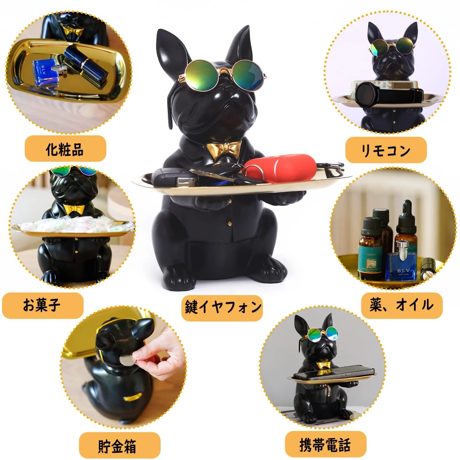 【多機能】雑貨収納トレイとして、携帯電話、鍵、メガネ、リモコンなど小物を収納できるだけでなく、キャンディー収納皿や貯金箱としても幅広く応用されています。リビングやダイニングテーブルの飾りに最適です。もちろん、手を洗ったり、皿を洗ったり、料理をしたりするときに、ブルドッグトレイをバスルームかキッチンに置いて、指輪、イヤリング、ネックレス、腕時計を配置するのにも大活躍しています。とにかく、犬オブジェ、雑貨収納や小銭ボックスを備える2022年に生まれた多機能で面白い新製品です。