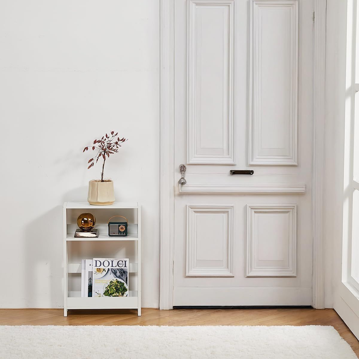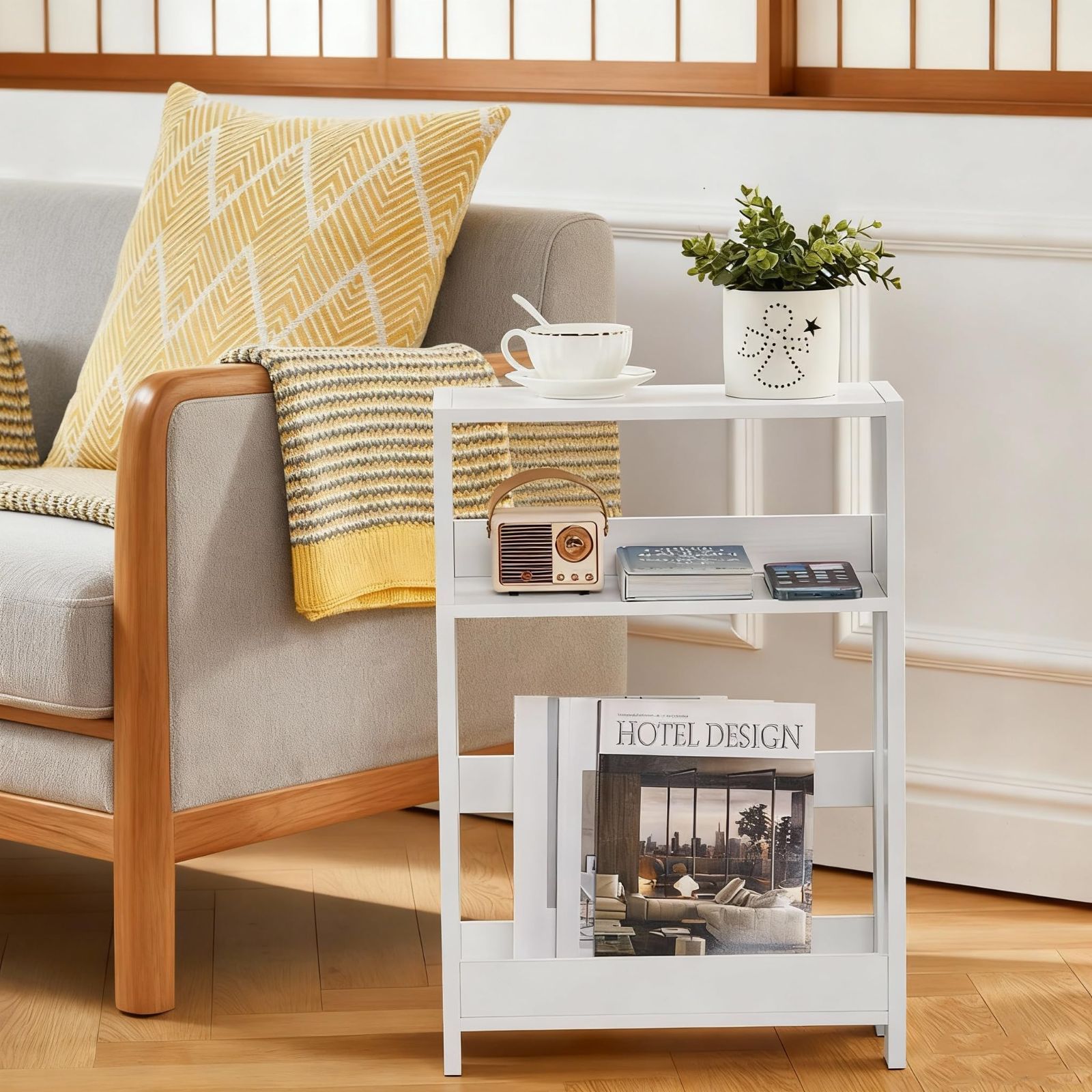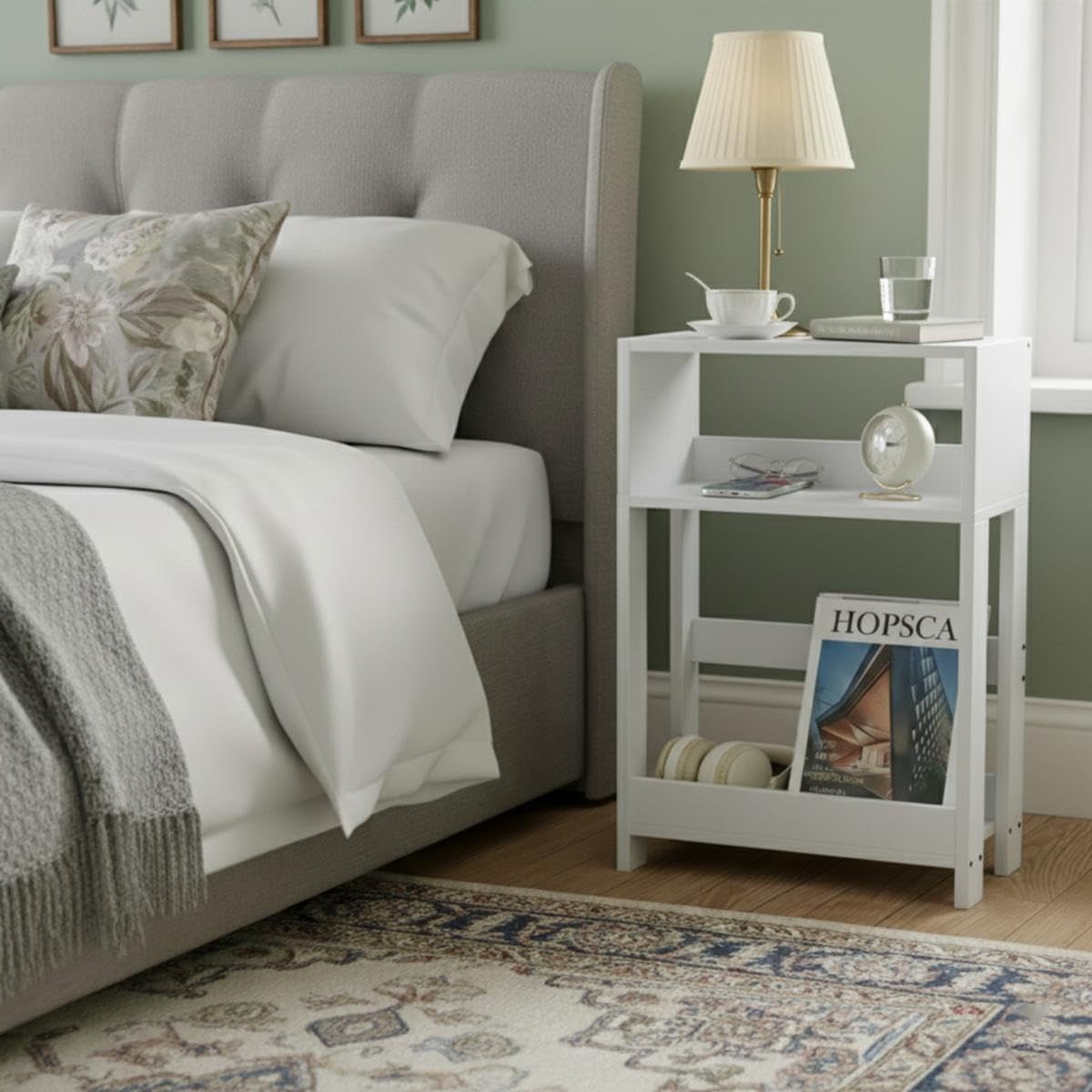 ベッドサイドテーブル スリム 幅40×奥行18×高さ58cm 収納棚 ミニテーブル ナイトテーブル リビングサイドテーブル ベッド横 ソファーテーブル 木目調 (ホワイト)