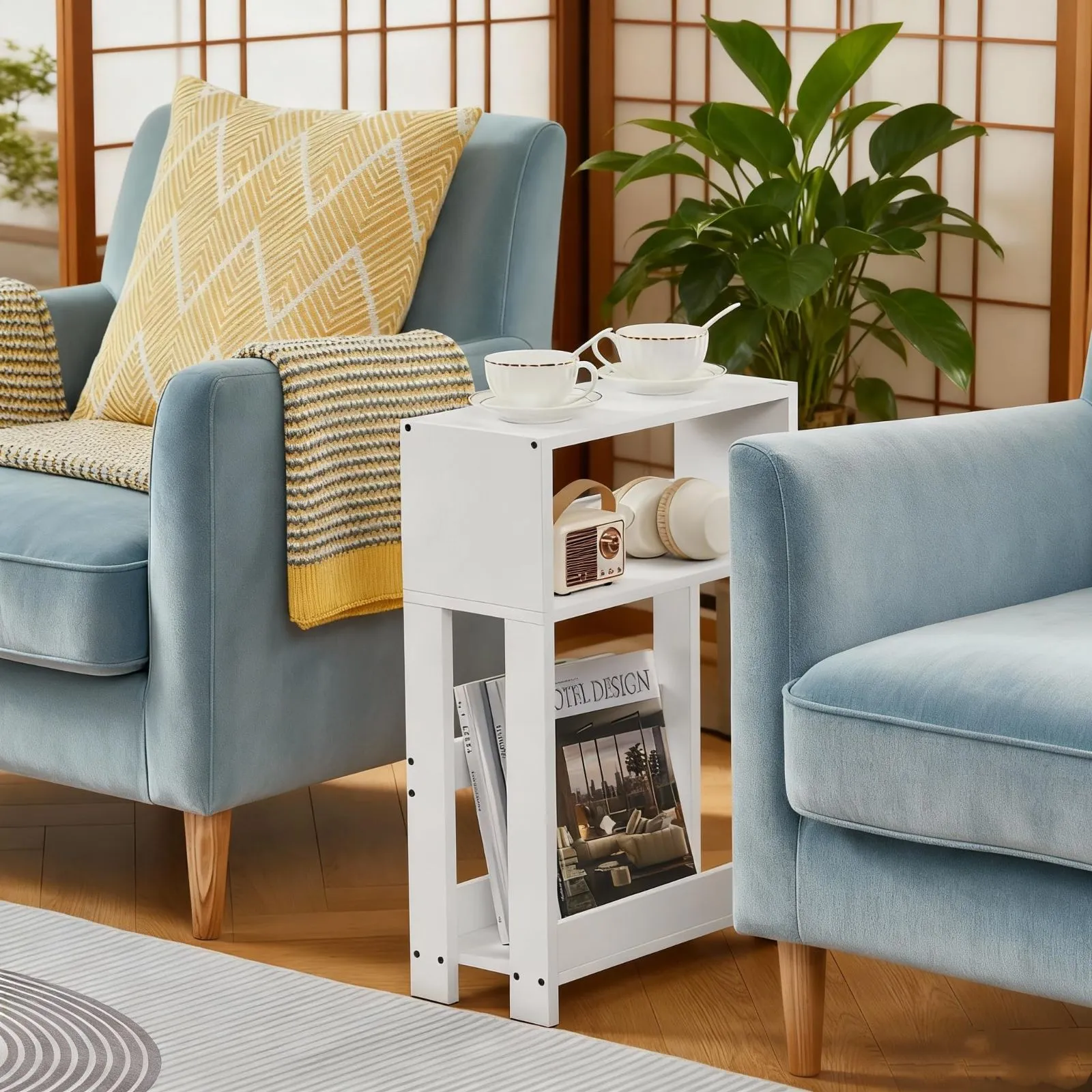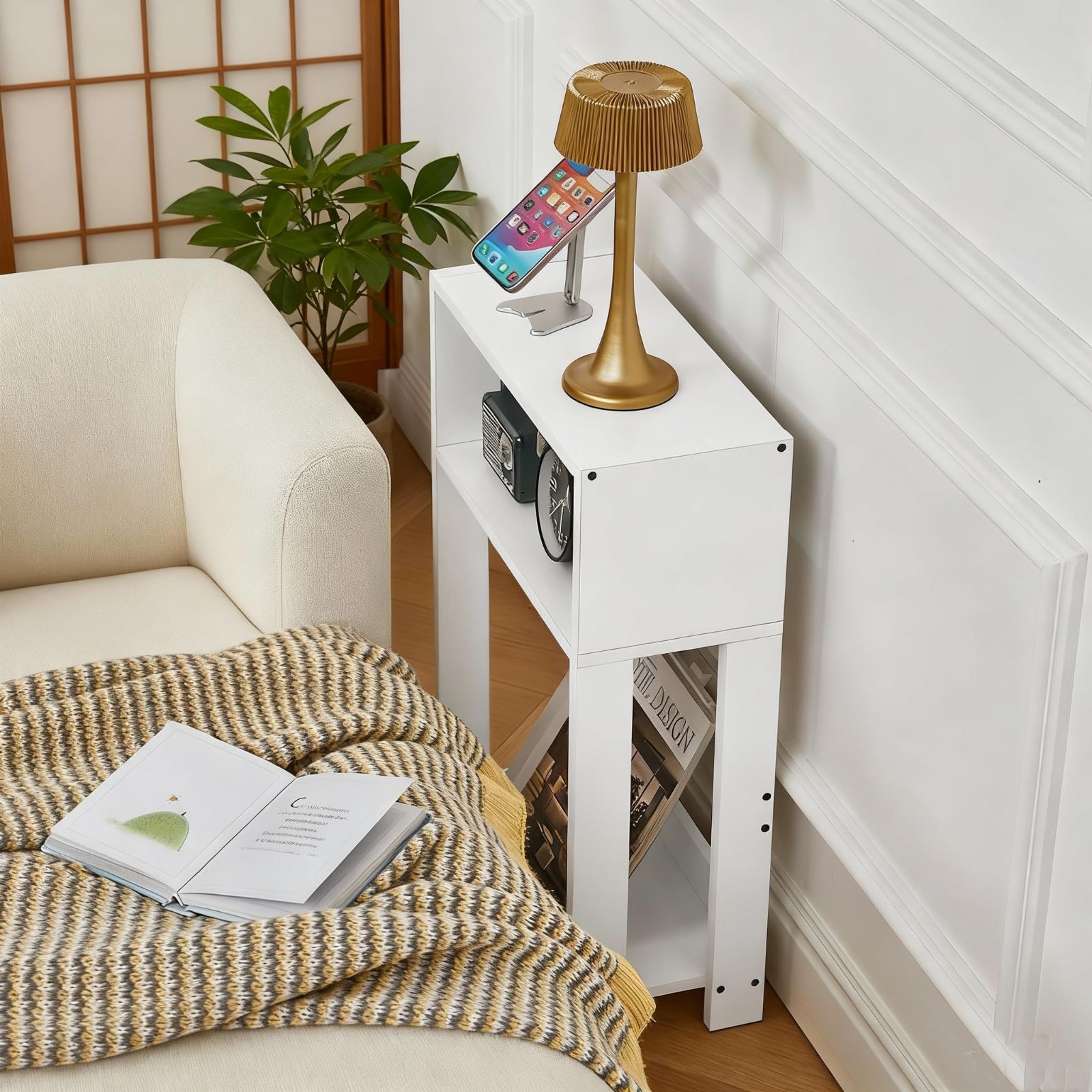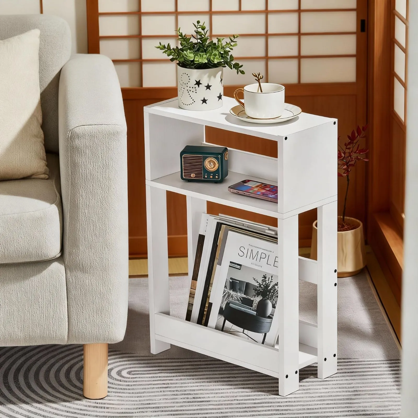 【超省スペース】スリム設計で狭い隙間にもピッタリ!多機能サイドテーブル! 40×18×58cmのコンパクトボディがリビング・ベッドサイド・バルコニーの狭小空間に最適!底部に雑誌や漫画や本を収納できる、上部はスマホ・リモコン・マグカップ置き場として活用可能。天然木材使用で耐久性抜群、北欧風デザインがお部屋のオシャレ度をアップ。人気キーワード「省スペース 収納」「リビングテーブル 薄型」に対応し、機能性とデザイン性の両立でレビュー高評価続出中!