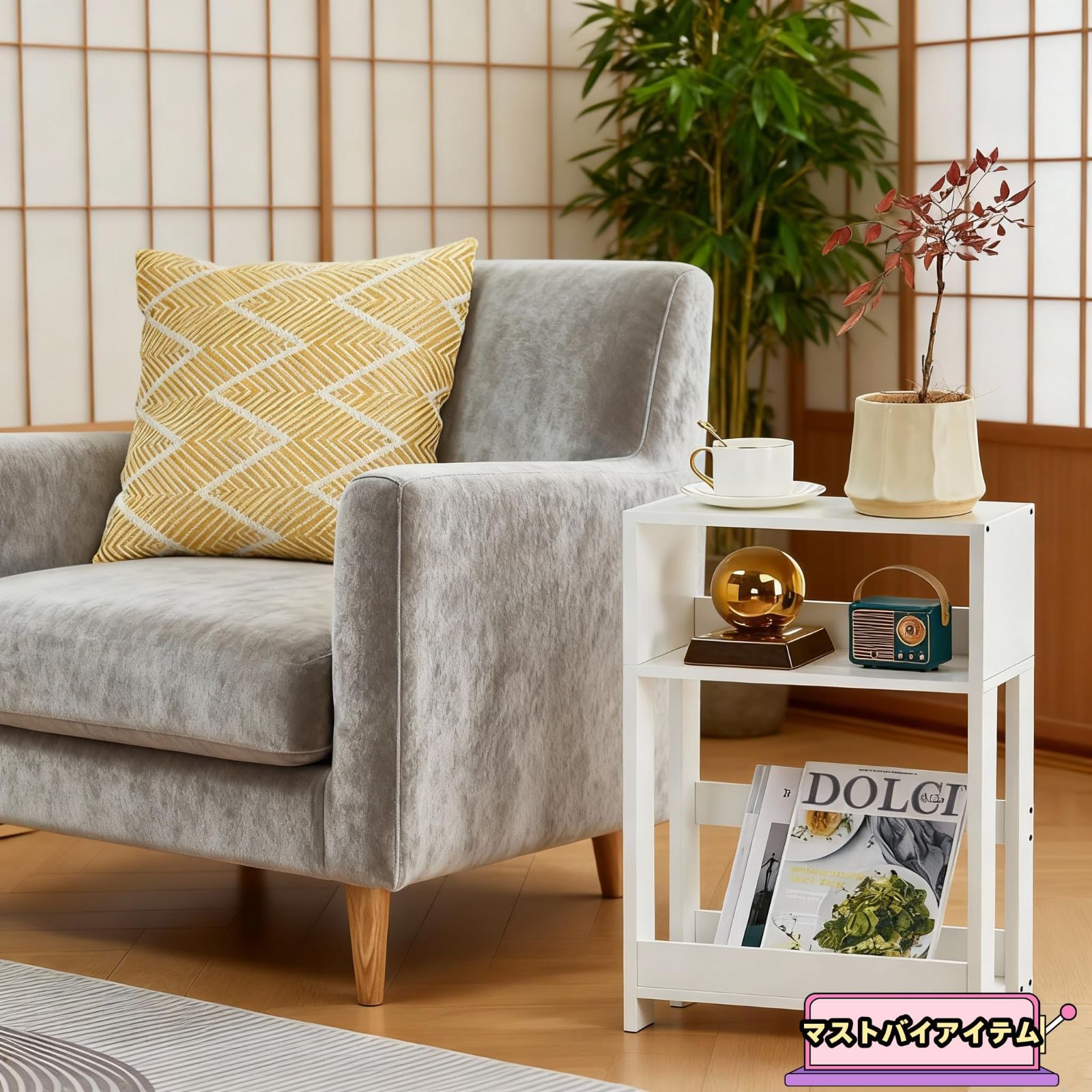 【収納力・耐久性抜群】上部天板で毎日使う小物を整理しつつ、底部スペースには最大A4サイズの雑誌やカタログを収納可能。高さ58cmはソファやベッドとの使い勝手を考慮した「人間工学設計」で、ストレスなく物の出し入れが可能です。さらに、軽量ながら耐荷重50kgの耐久性で、一時的な作業デスク代わりにも活用できる多機能性が売りです。