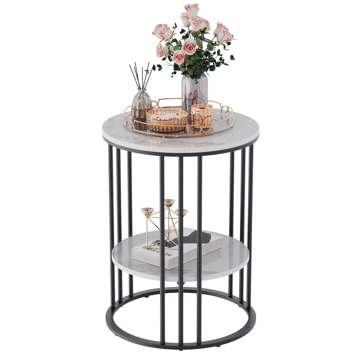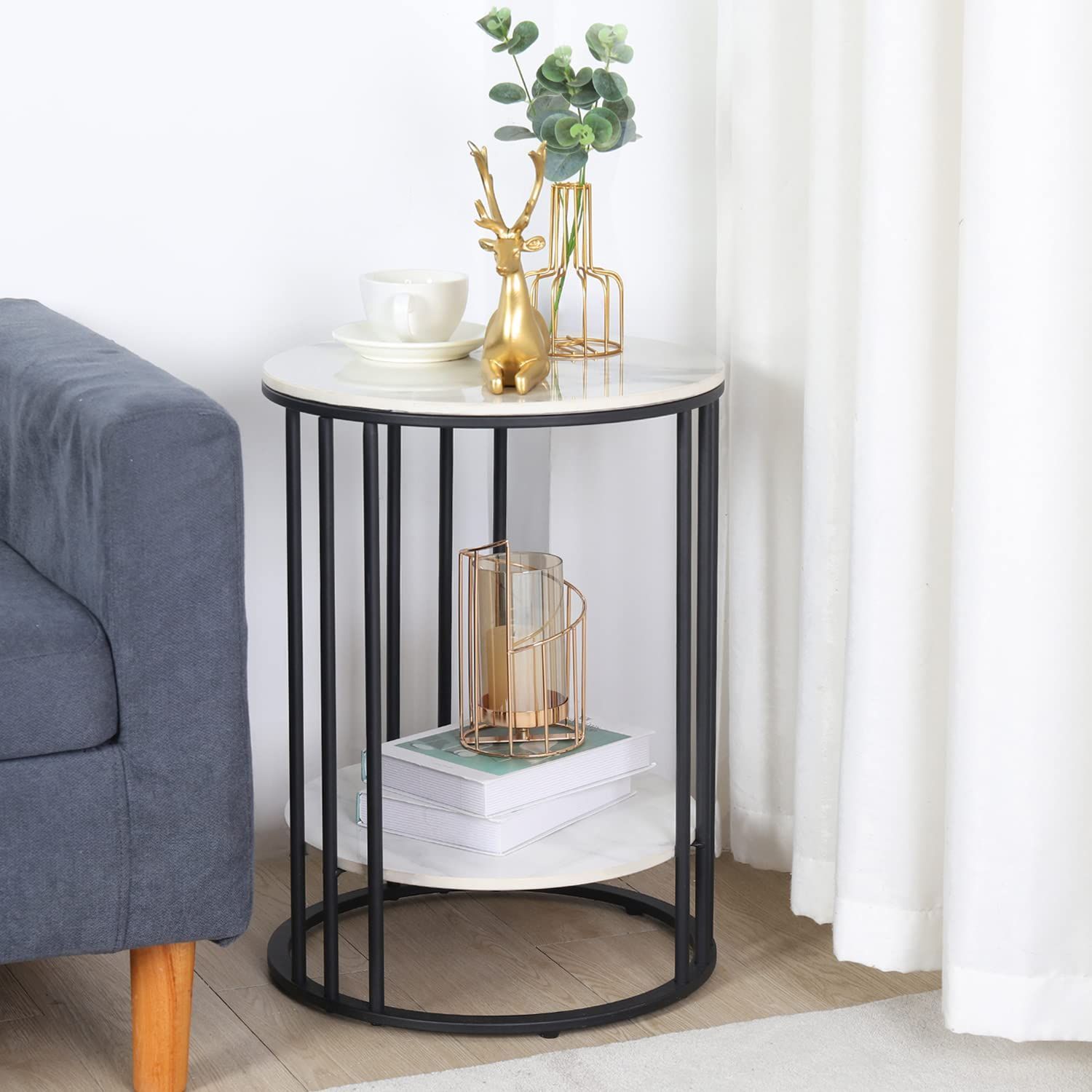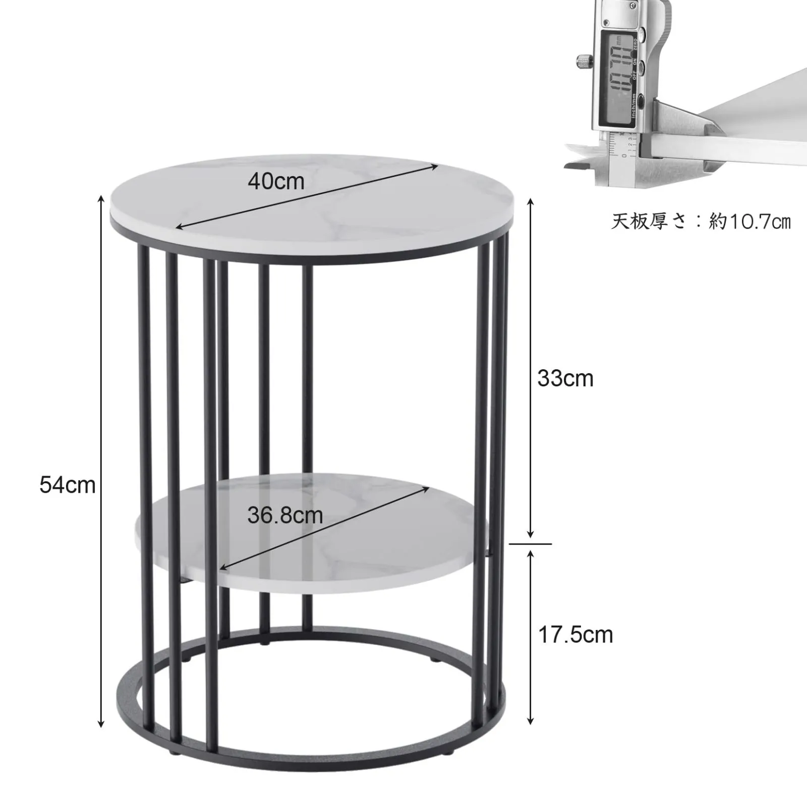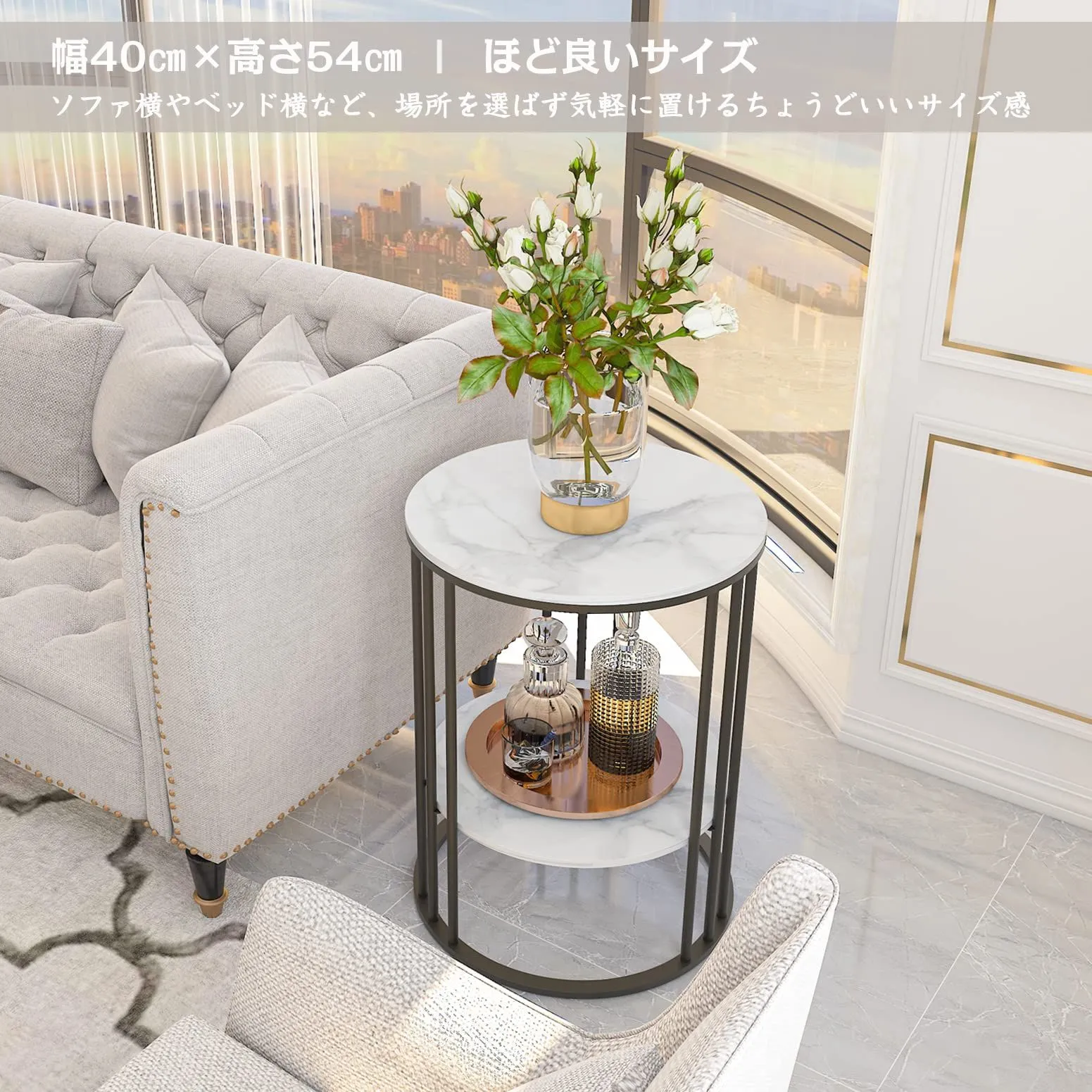 UNHO サイドテーブル ベッドサイド 大理石 一人暮らし ソファー リビング ミニ テーブル 小さい 寝室 丸テーブル おしゃれ スリム ナイトテーブル 北欧 収納 置き台 低い 2段 セラミック天板