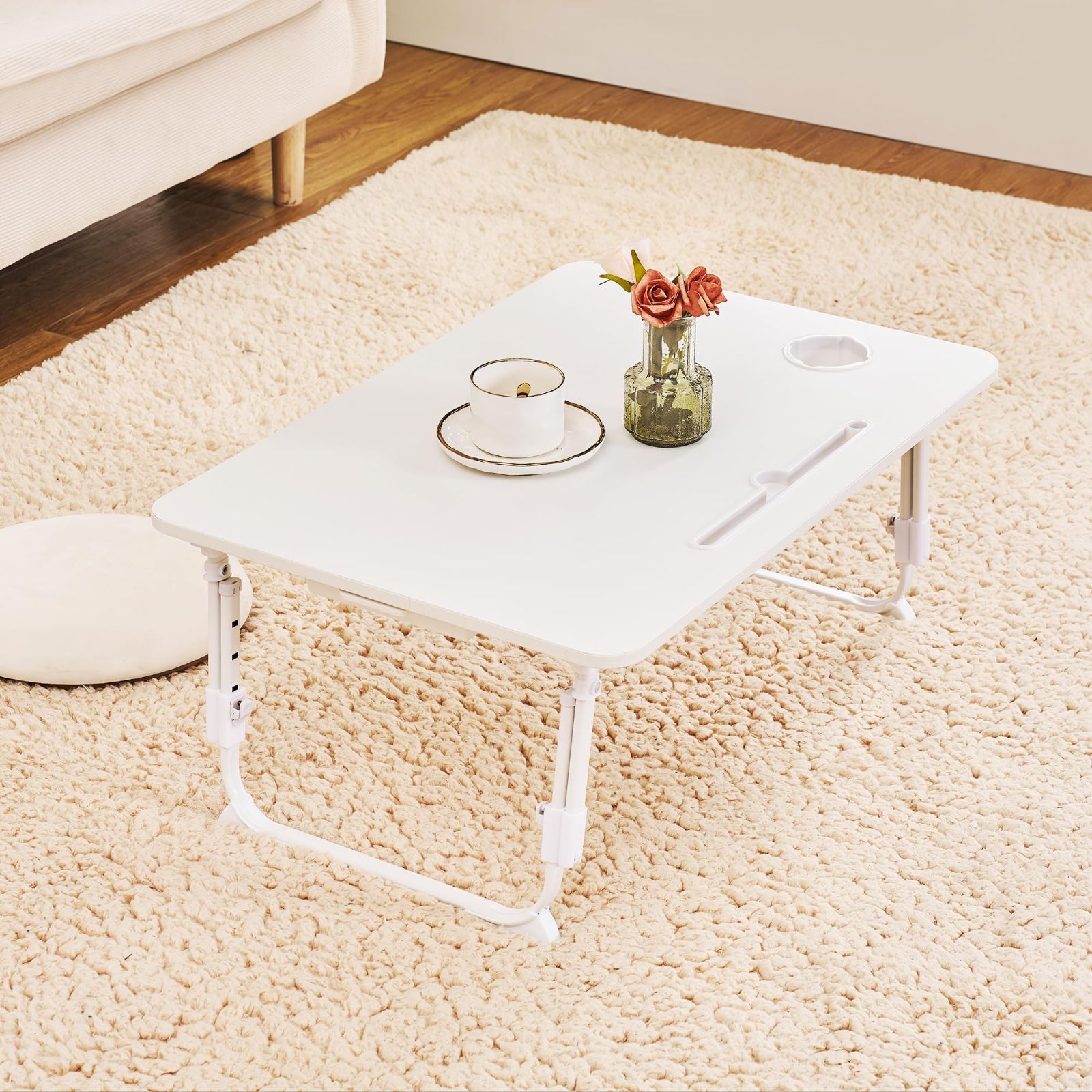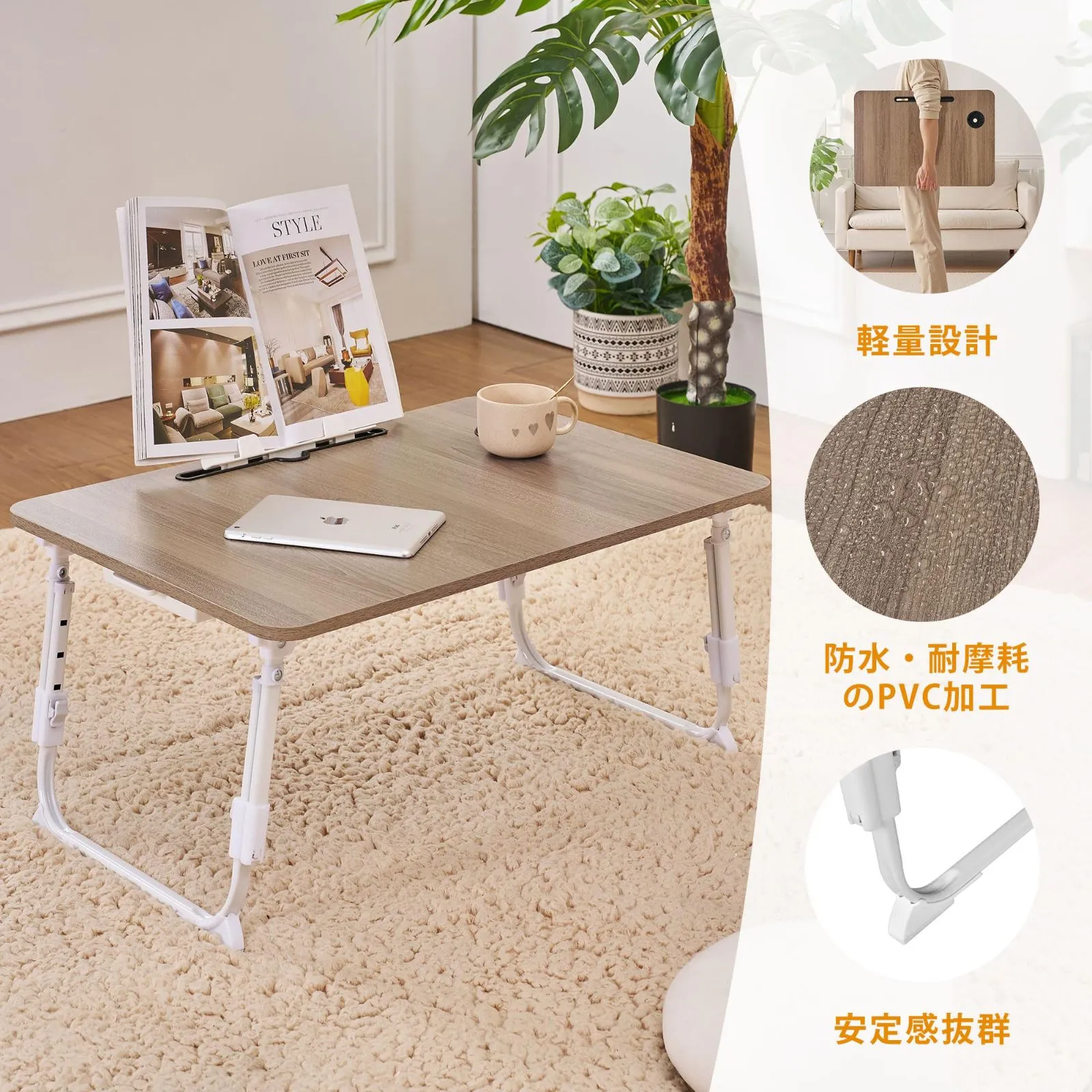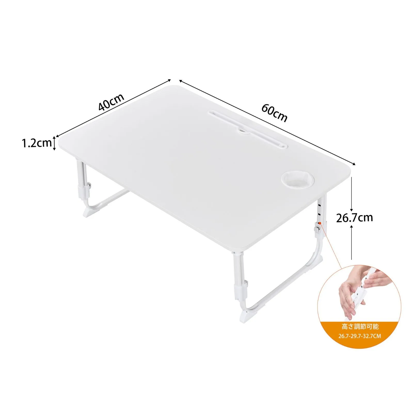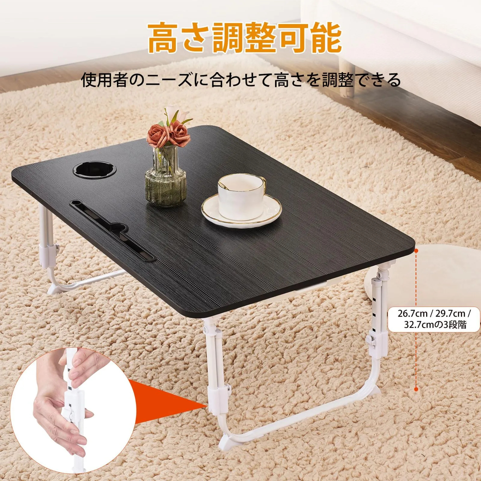 VECELO 折りたたみテーブル 机 ローテーブル ミニテーブル コンパクト 省スペース 高さ調整 3段階(26.7-29.7-32.7CM) ノートPC タブレットスタンド ドリンクホルダー付 軽量 小型 持ち運び便利 ベッドテーブル 座卓 学習 作業台 勉強机 食事 在宅勤務 組み立て不要