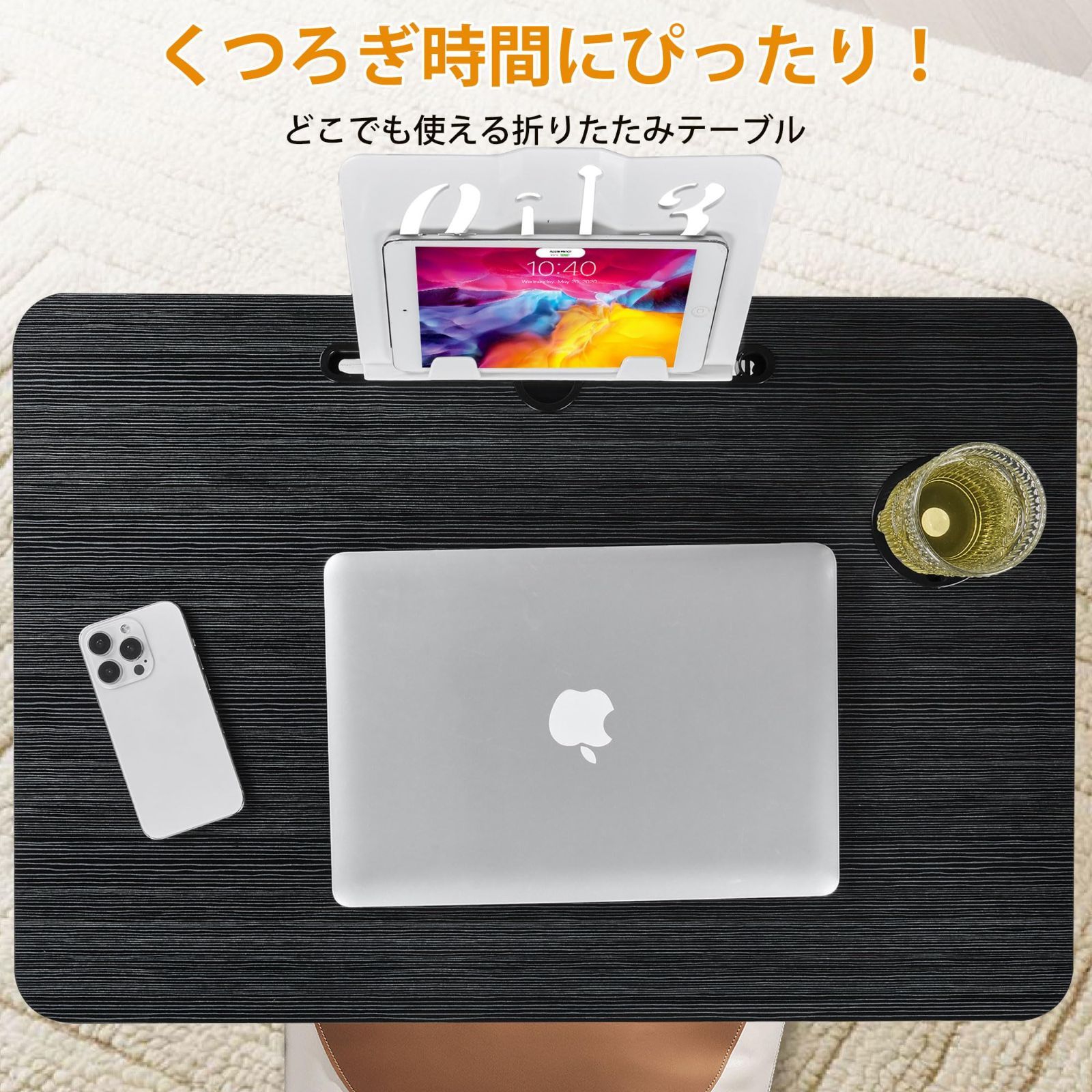 【折りたたみ式&省スペース】この折りたたみ式テーブルはコンパクトに折りたたんで収納できるため、場所を取らずにスッキリ整理できます。軽量設計で持ち運びも簡単です。ベッドやソファ、フローリング、オフィス、アウトドアなど、さまざまなシーンで活躍し、どこでも快適に使用できます。