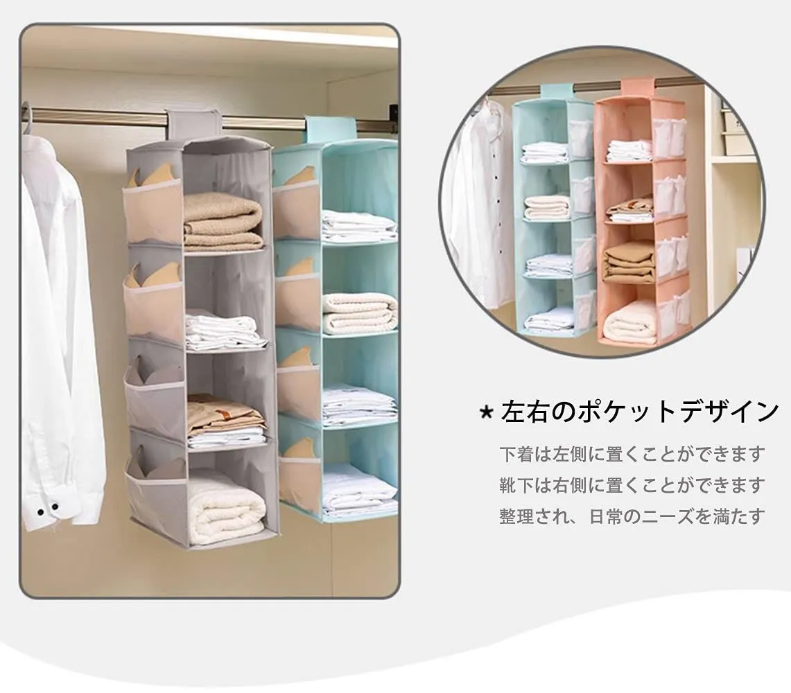 【高品質無臭素材】クローゼット吊り下げ収納は良質な不織布を採用しており、安全無臭、通気性に優れていて、吸湿性もあります。収納ラックの中間層は硬いPP板が入っているため、耐力が強くて、吊るして収納型崩れ防止できます。