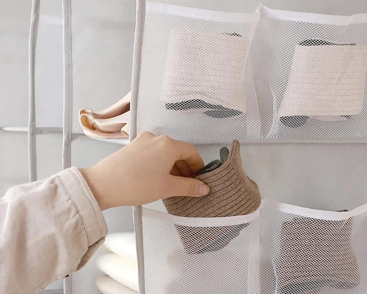 吊り下げ収納 クローゼット 収納 吊り下げ 水洗い可能 防湿防カビ 取り付け簡単 つりさげ 収納 衣類ラック 下着 靴下 帽子 収納 クローゼット つりさげ 収納 収納 バッグハンガー 4段式 3段式(3段式 ライトグレー)