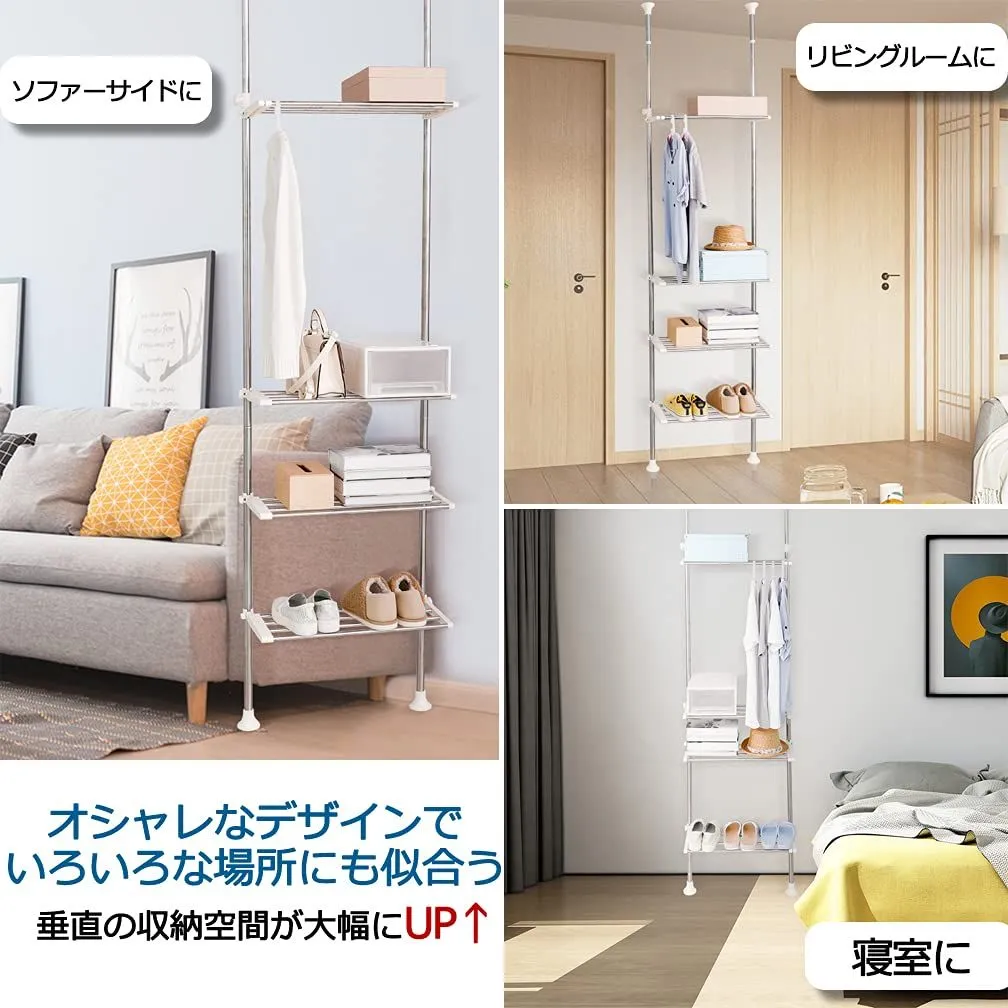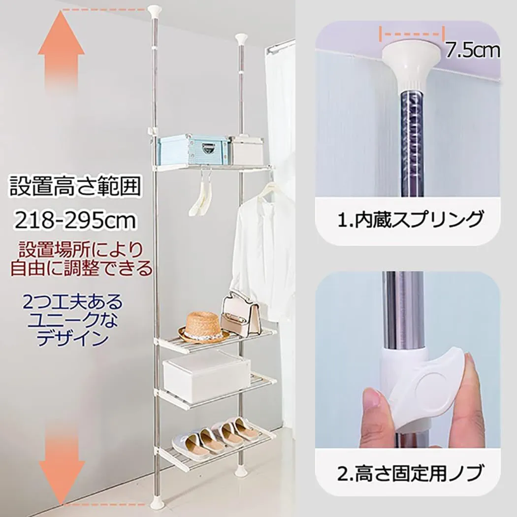 組み立てが簡単:簡単組み立て/工具不要、穴をあける必要がなく、ゆかいたや天井を損傷しない。4段棚でたっぷりと収納できます。