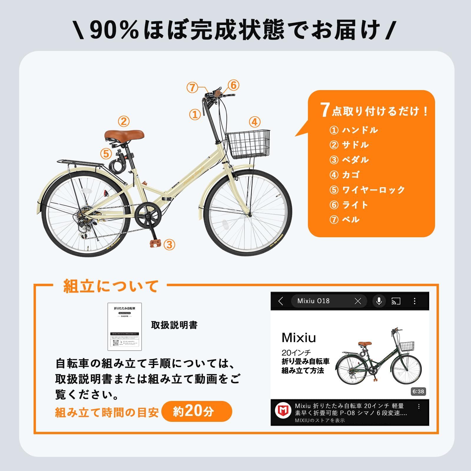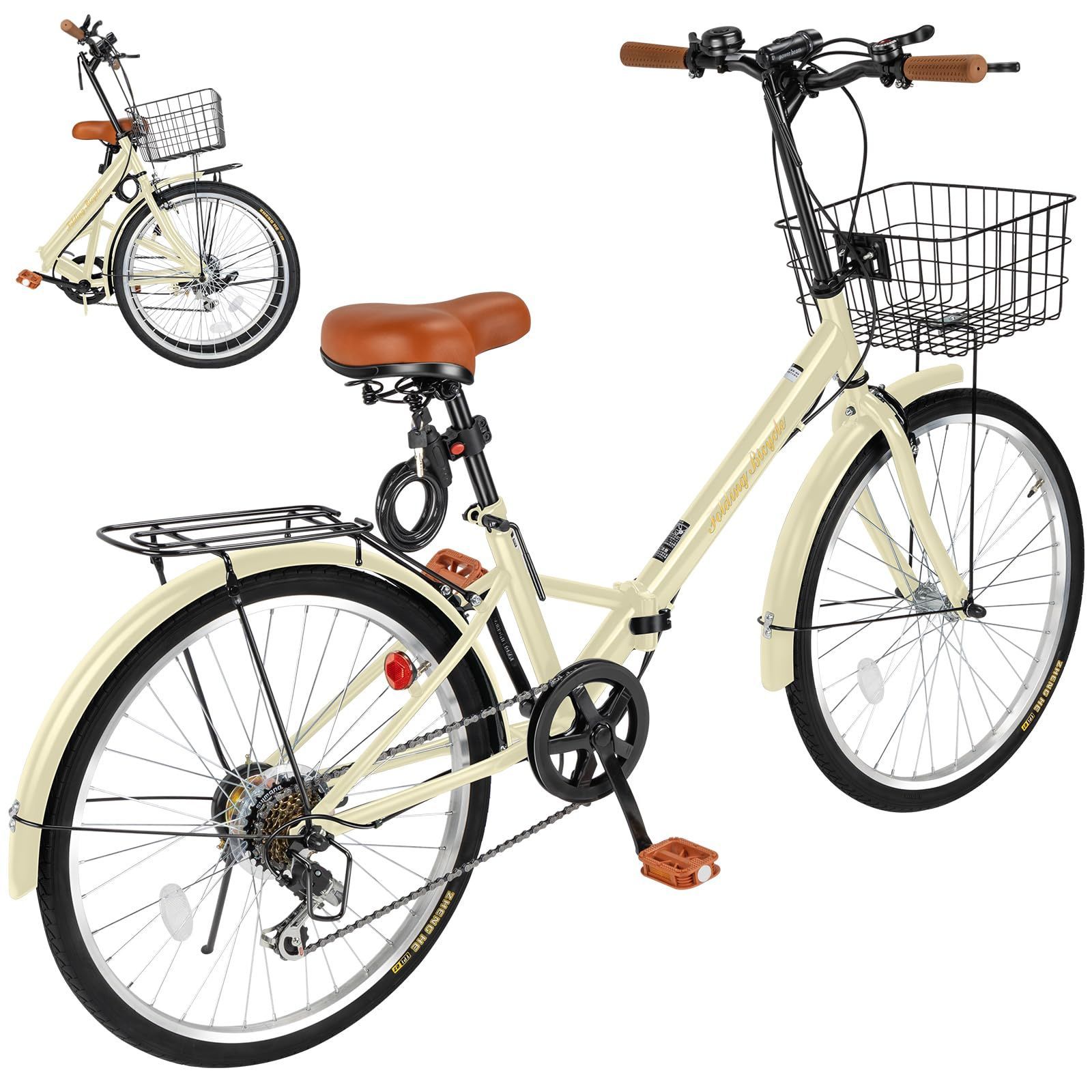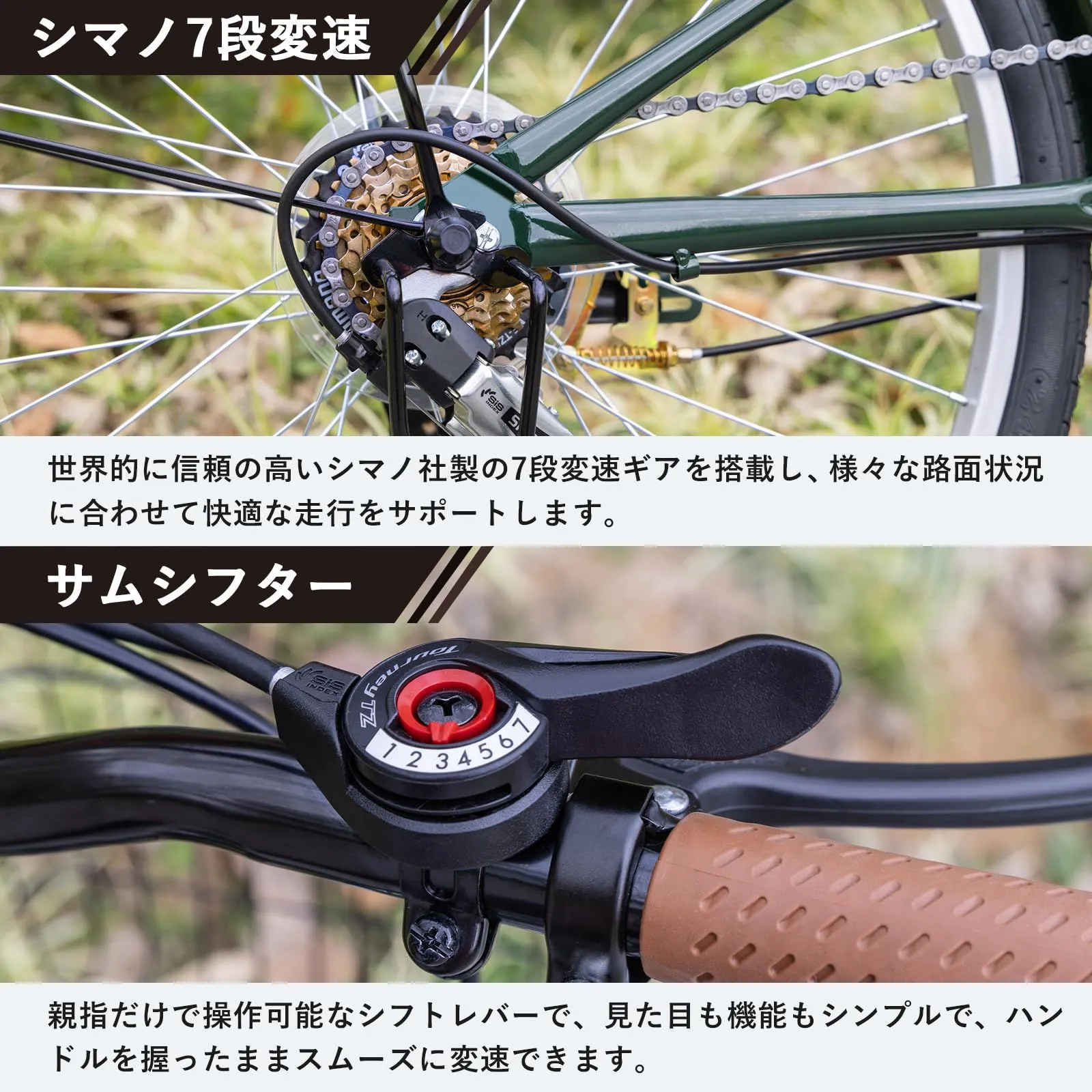 Mixiu 折りたたみ自転車 シマノ7段変速 高炭素鋼フレーム 折り畳み自転車 20インチ/24インチ 厚めのサドル リアキャリア・カゴ・ライト・ワイヤーロック・空気入れ付き 軽量 自転車 通勤 通学 街乗り 男女兼用 (カーキ, 24インチ)